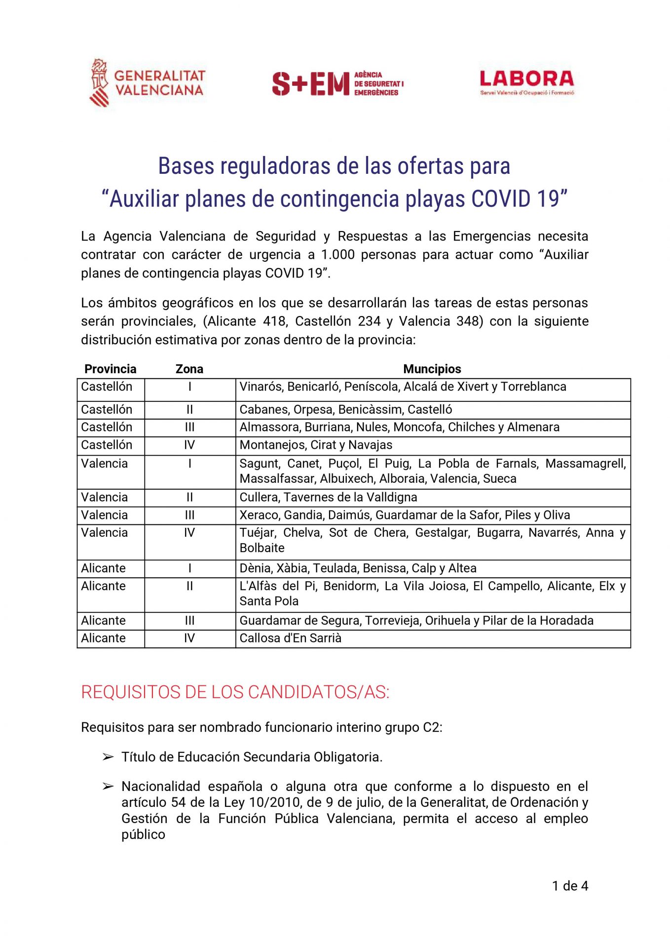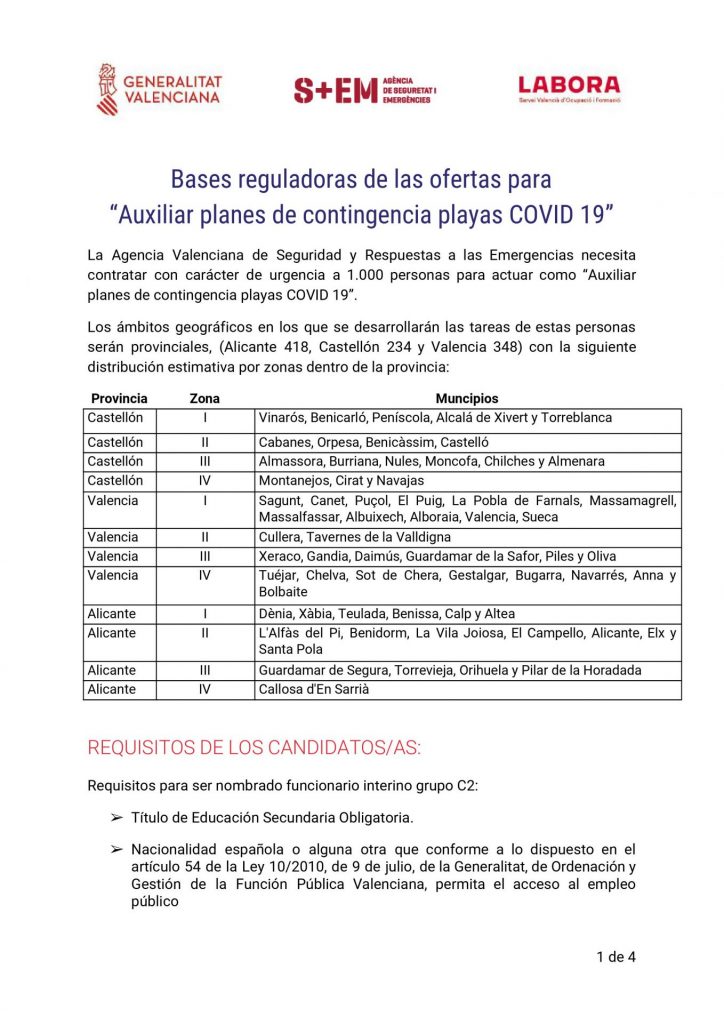 1.000 AUXILIARES DE PLAYA PARA LA COMUNIDAD VALENCIANA #COVID19