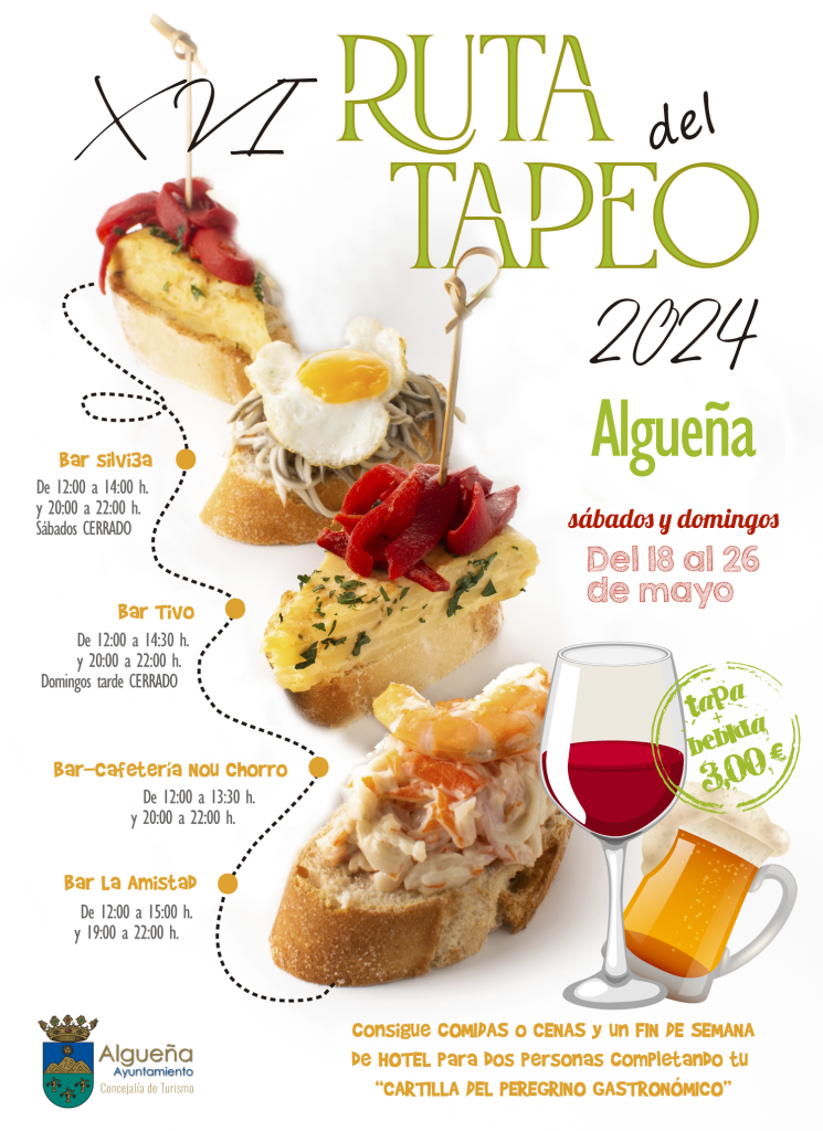 Los sábados y domingos, del 18 al 26 de mayo, os esperamos para disfrutar de una buena tapa mientras recorréis los rincones más deliciosos de nuestro municipio.