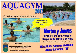 Queda abierto el plazo de inscripción de AQUAGYM y ESCUELA DE VERANO. Y el 15 de junio, en los bajos del Ayuntamiento, se realizará la inscripción para los cursos de NATACIÓN.
