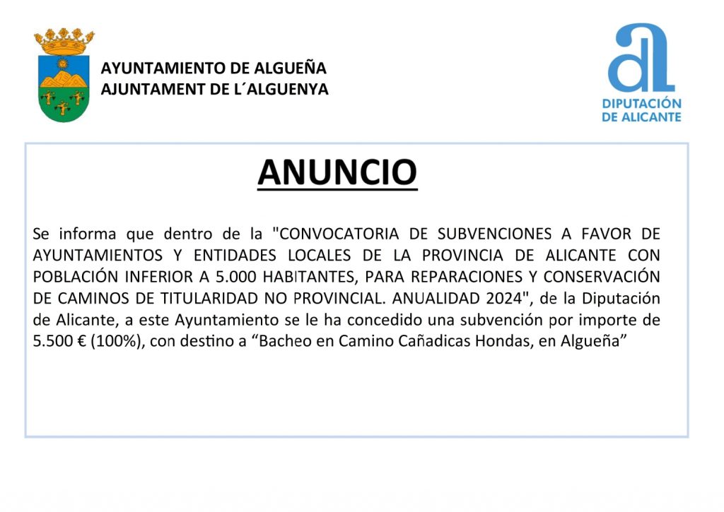 Categoria: Anuncio, Diputación de Alicante, Medio Ambiente, Noticias, Obras, Subvenciónes