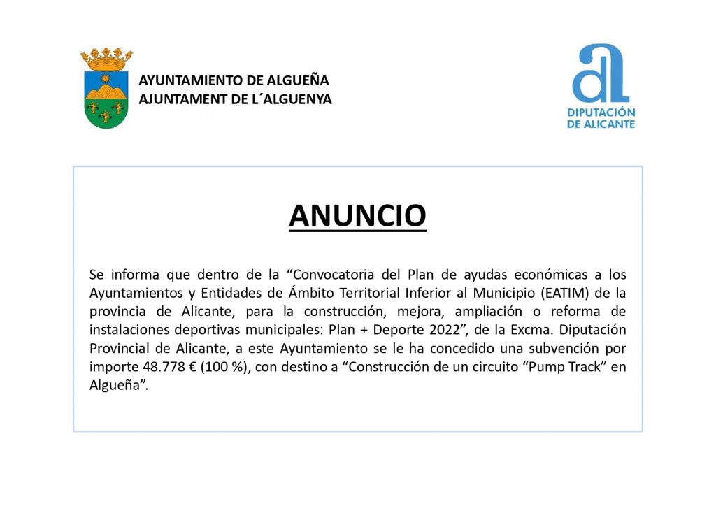 Categoria: Anuncio, Deporte, Diputación de Alicante, Juventud, Noticias, Obras, Subvenciónes