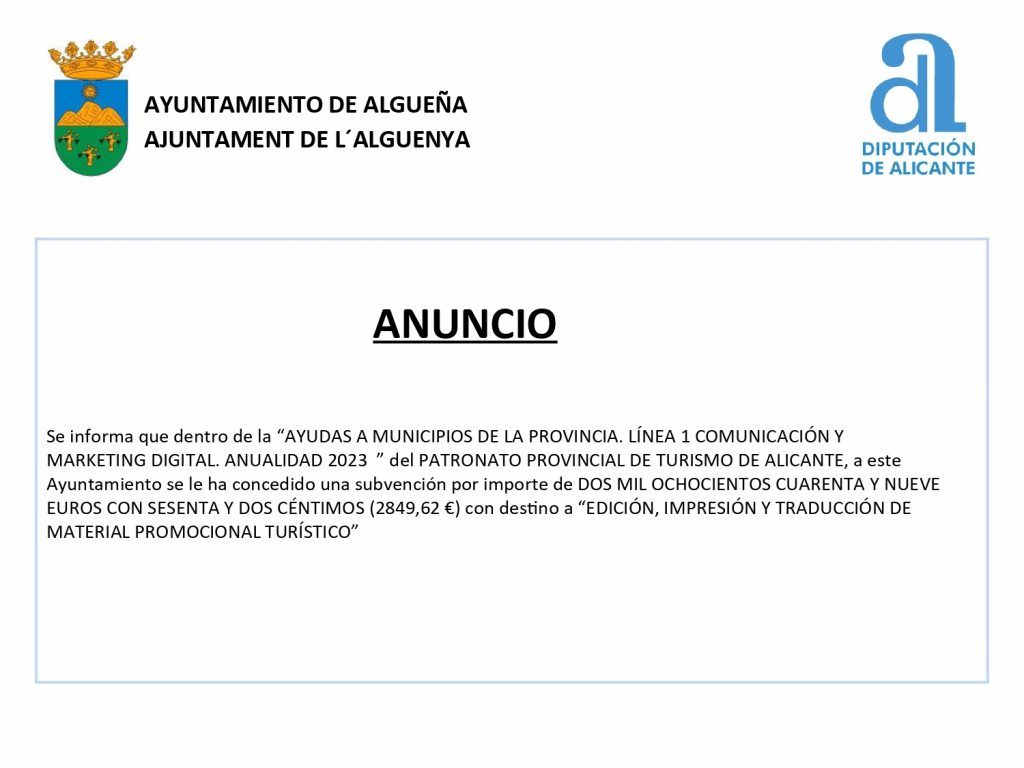 Categoria: Anuncio, Diputación de Alicante, Noticias, Subvenciónes