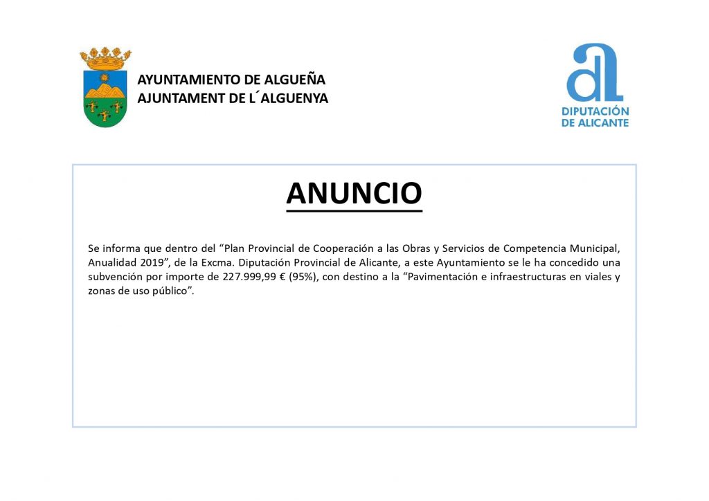 Categoria: Anuncio, Diputación de Alicante, Noticias, Obras, Subvenciónes