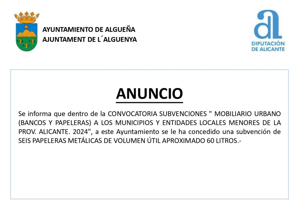 Categoria: Anuncio, Diputación de Alicante, Noticias, Subvenciónes