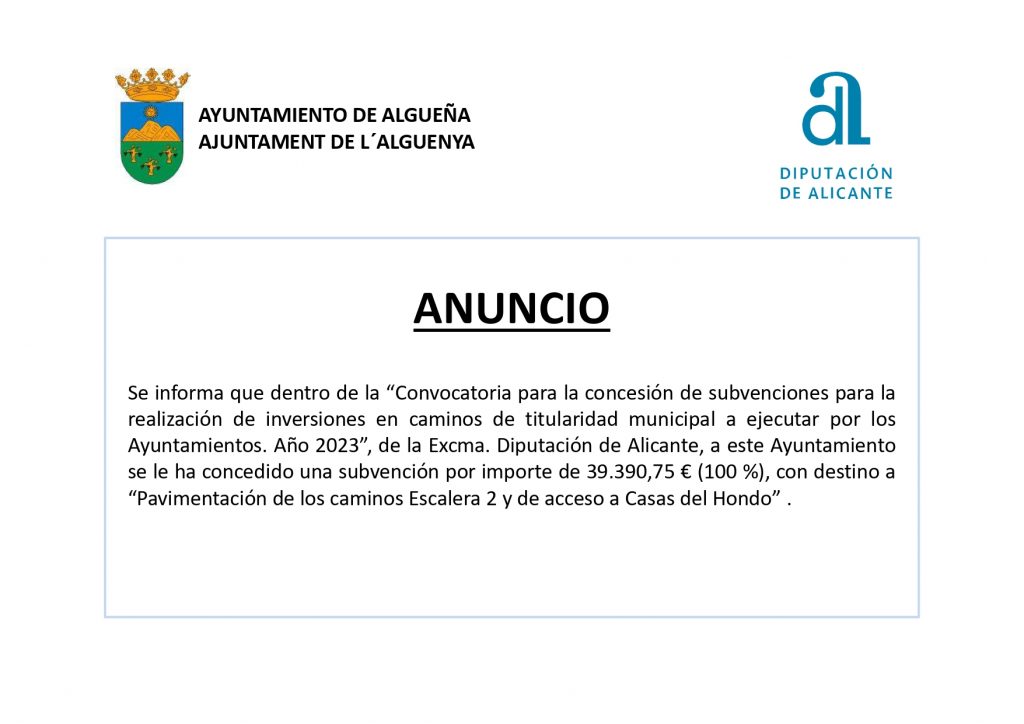 Categoria: Agricultura, Anuncio, Diputación de Alicante, Noticias, Obras, Subvenciónes
