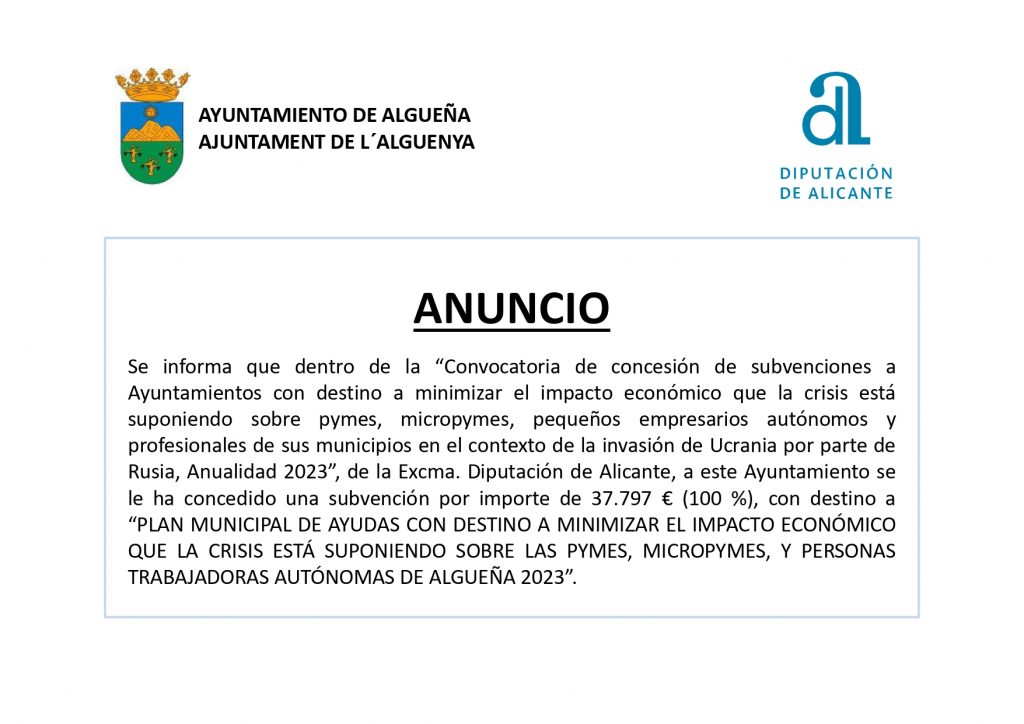 Categoria: Anuncio, Ayudas, Diputación de Alicante, Noticias, Subvenciónes