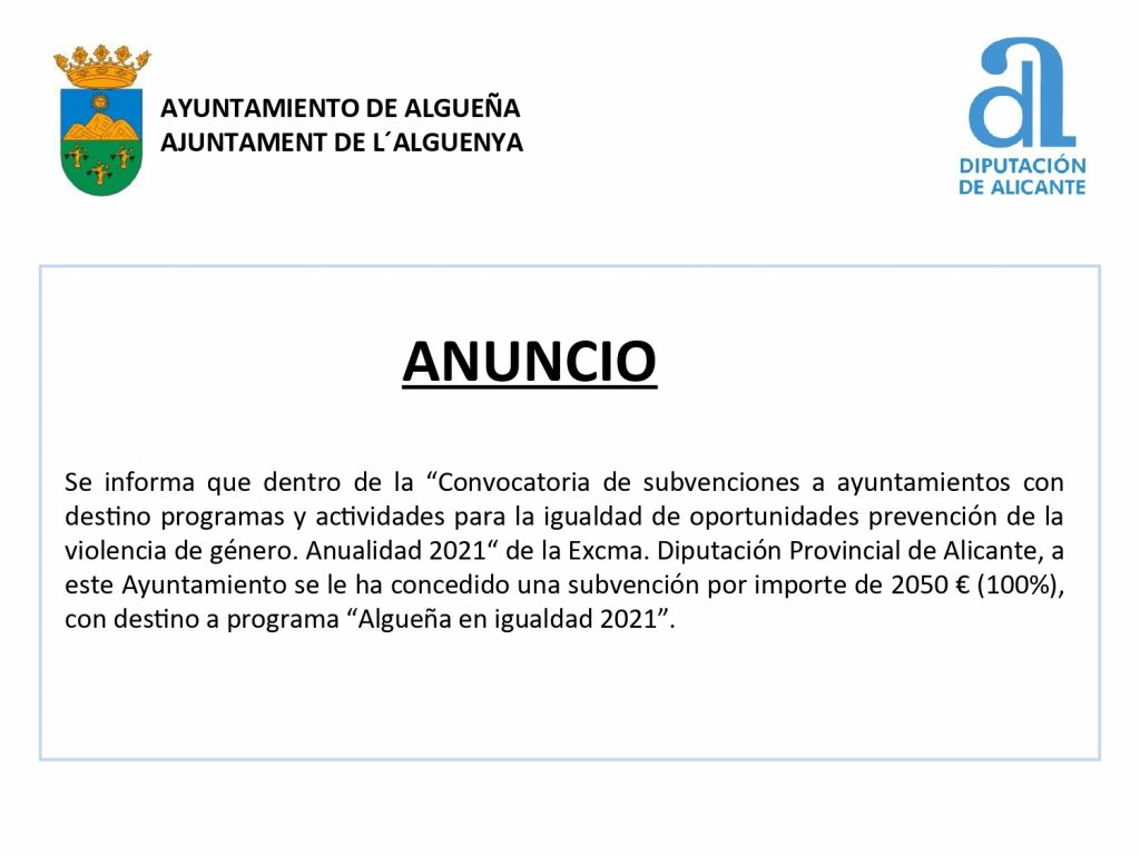 Categoria: Anuncio, Diputación de Alicante, Educación, Igualdad, Noticias, Subvenciónes