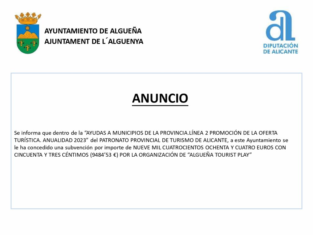 Categoria: Anuncio, Diputación de Alicante, Noticias, Noticias Turismo, Ocio, Subvenciónes