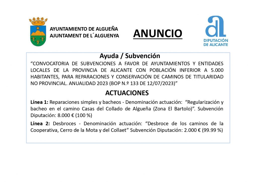 Categoria: Agricultura, Anuncio, Diputación de Alicante, Medio Ambiente, Noticias, Obras, Subvenciónes