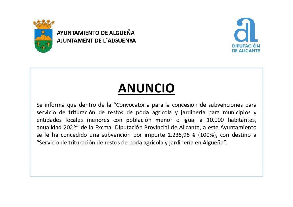 Categoria: Agricultura, Anuncio, Diputación de Alicante, Medio Ambiente, Noticias, Subvenciónes