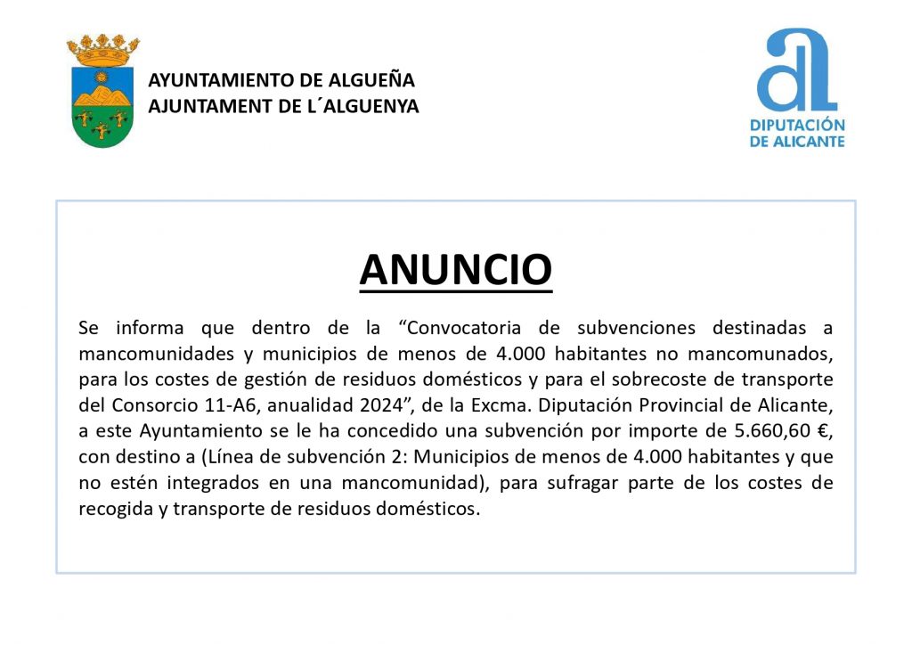 Categoria: Anuncio, Diputación de Alicante, Medio Ambiente, Noticias, Subvenciónes