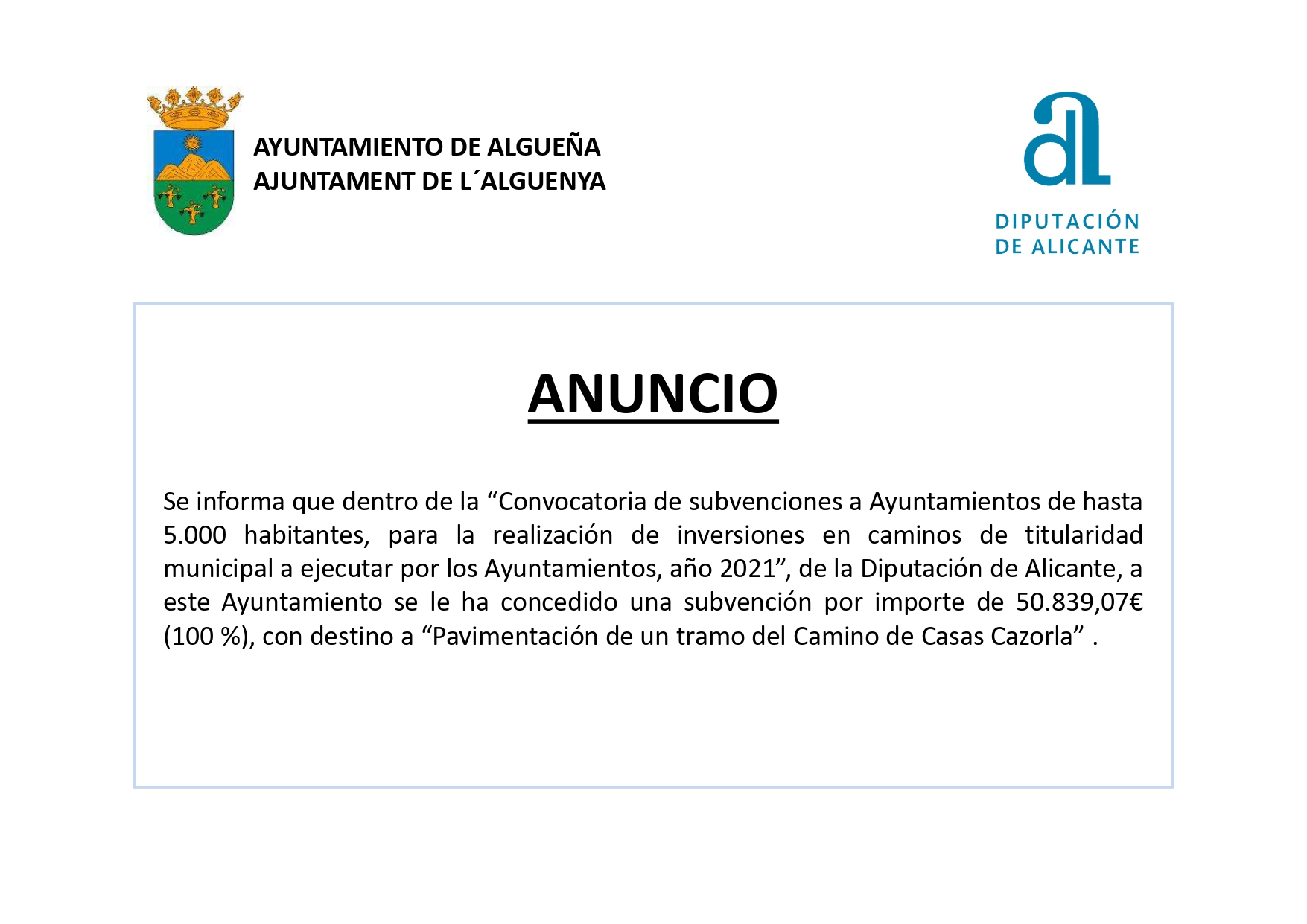 Categoria: Anuncio, Diputación de Alicante, Noticias, Obras, Subvenciónes