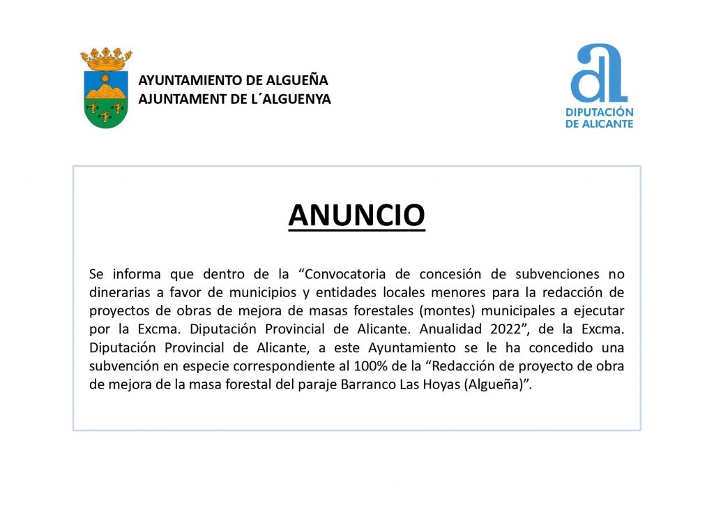 Categoria: Anuncio, Diputación de Alicante, Medio Ambiente, Noticias, Subvenciónes