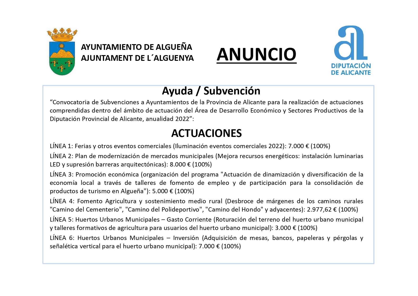 Categoria: Anuncio, Diputación de Alicante, Noticias, Obras, Subvenciónes