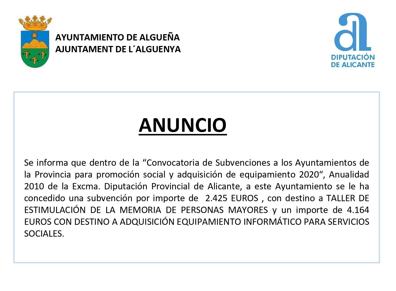 Categoria: Anuncio, Noticias, Salud, Subvenciónes