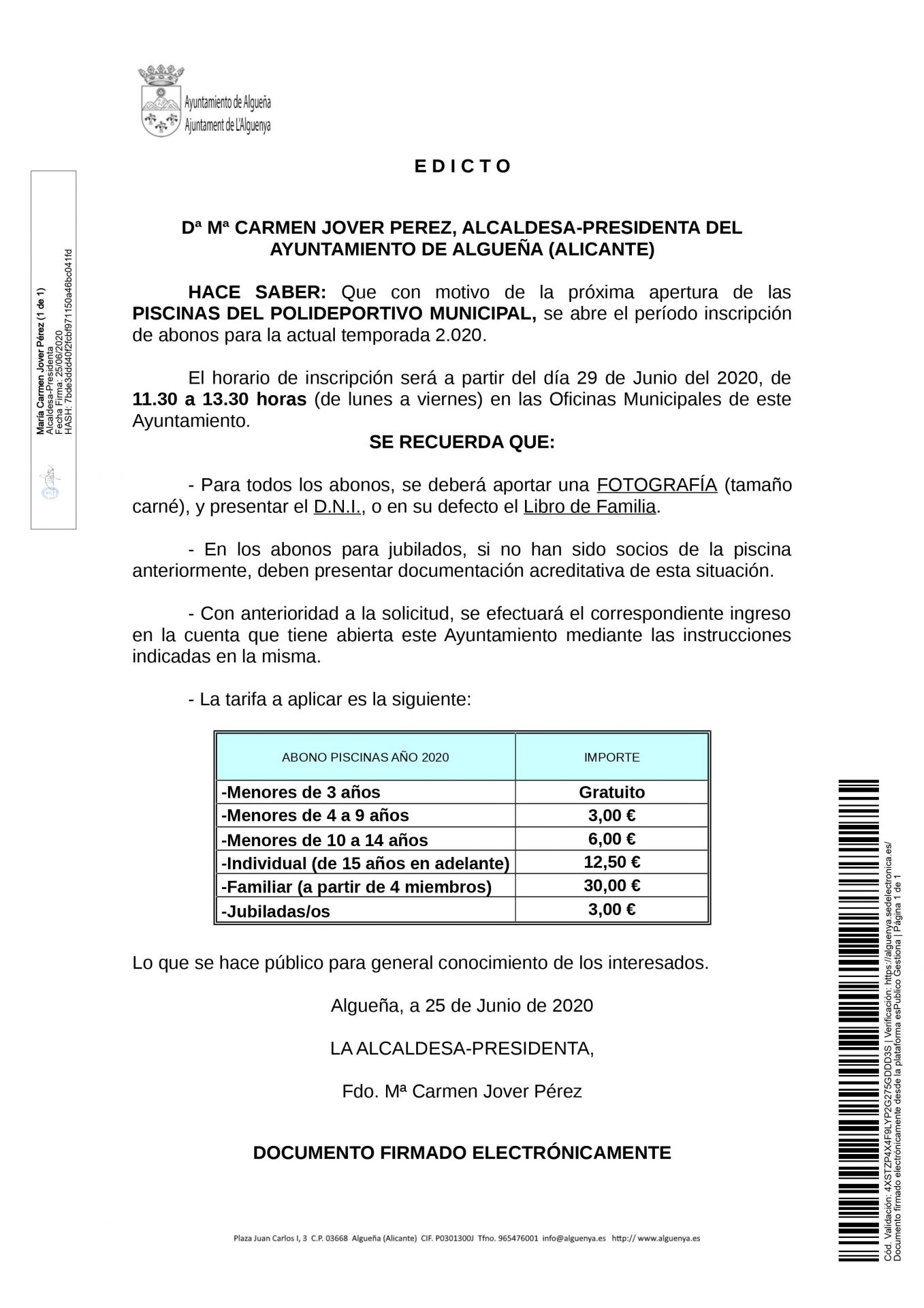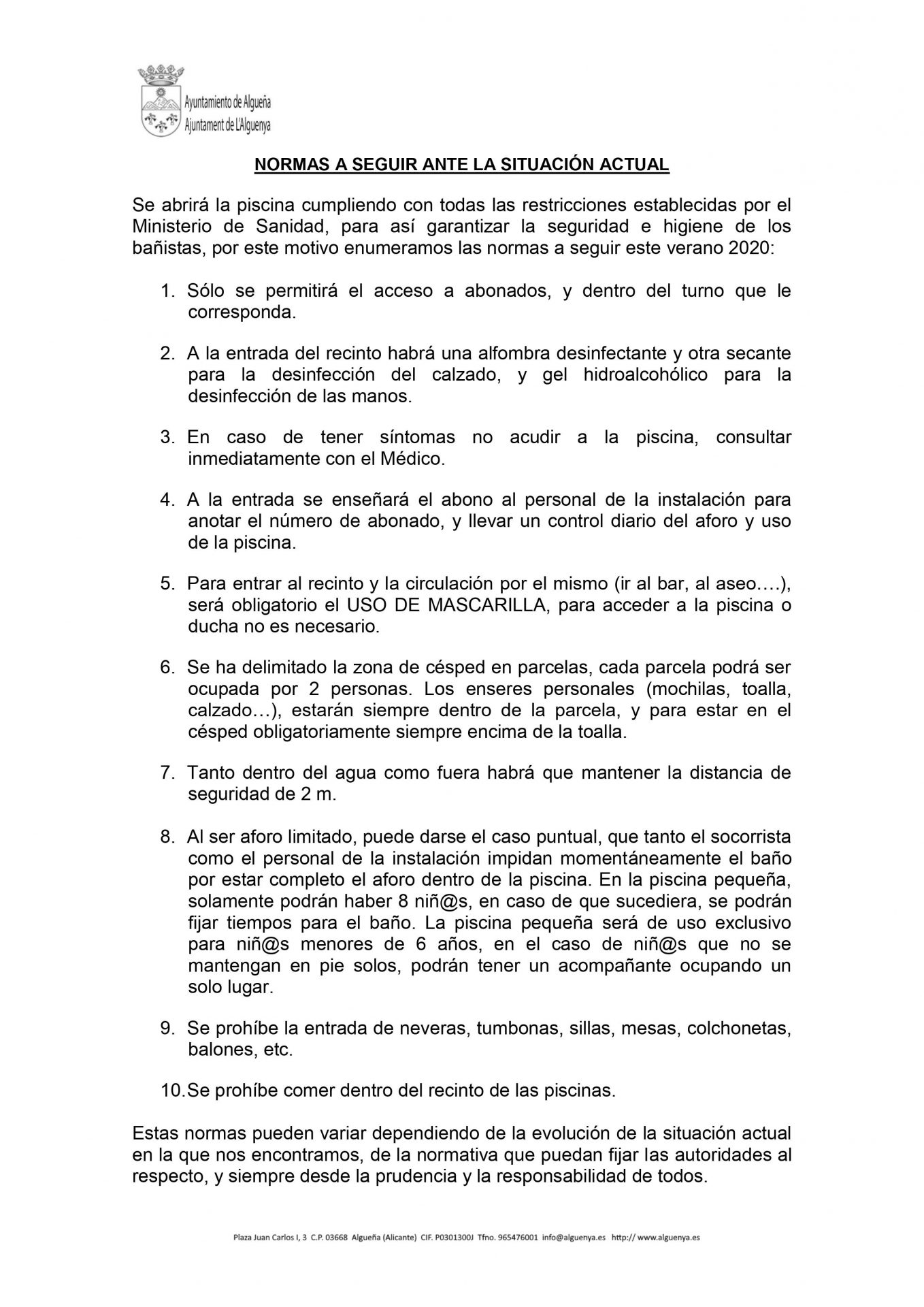 APERTURA DE LAS PISCINAS MUNICIPALES – #COVID-19
