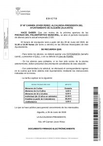 ? Inscripciones: A partir del lunes 29 de junio, en horario de 11:00 a 14:00 h. (Ayuntamiento).