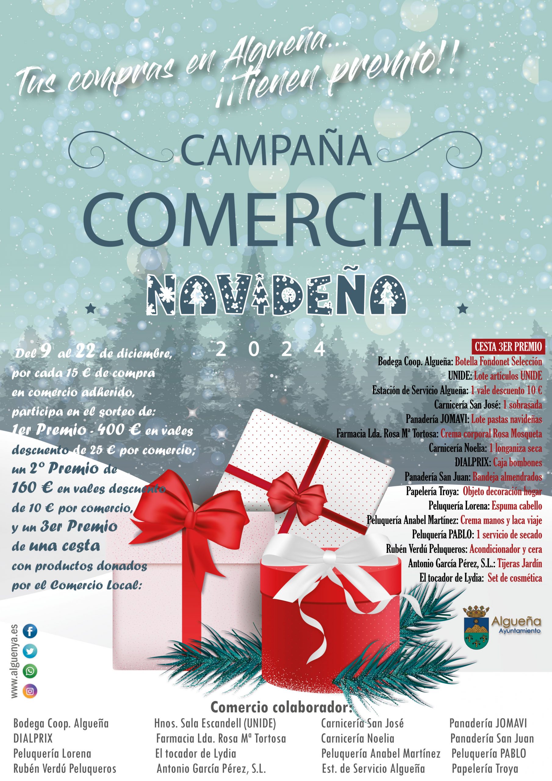Del 9 al 22 de diciembre, participa y gana, ¡¡¡porque tus compras en Algueña TIENEN PREMIO!!!.