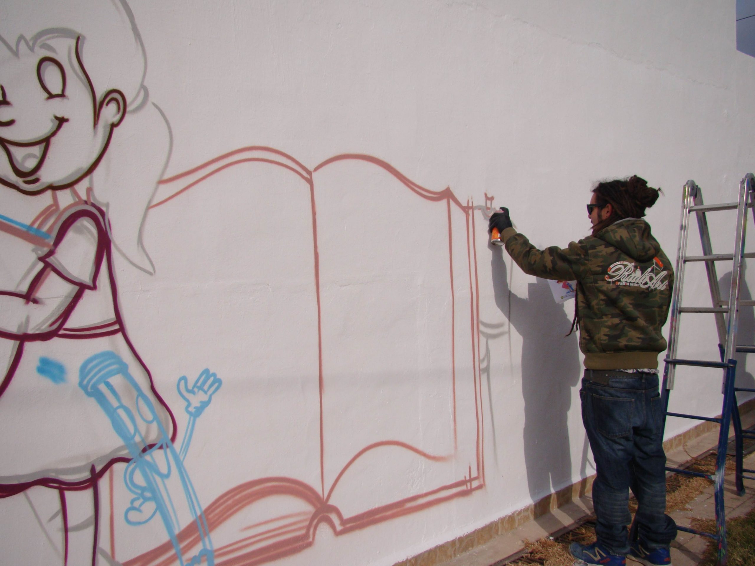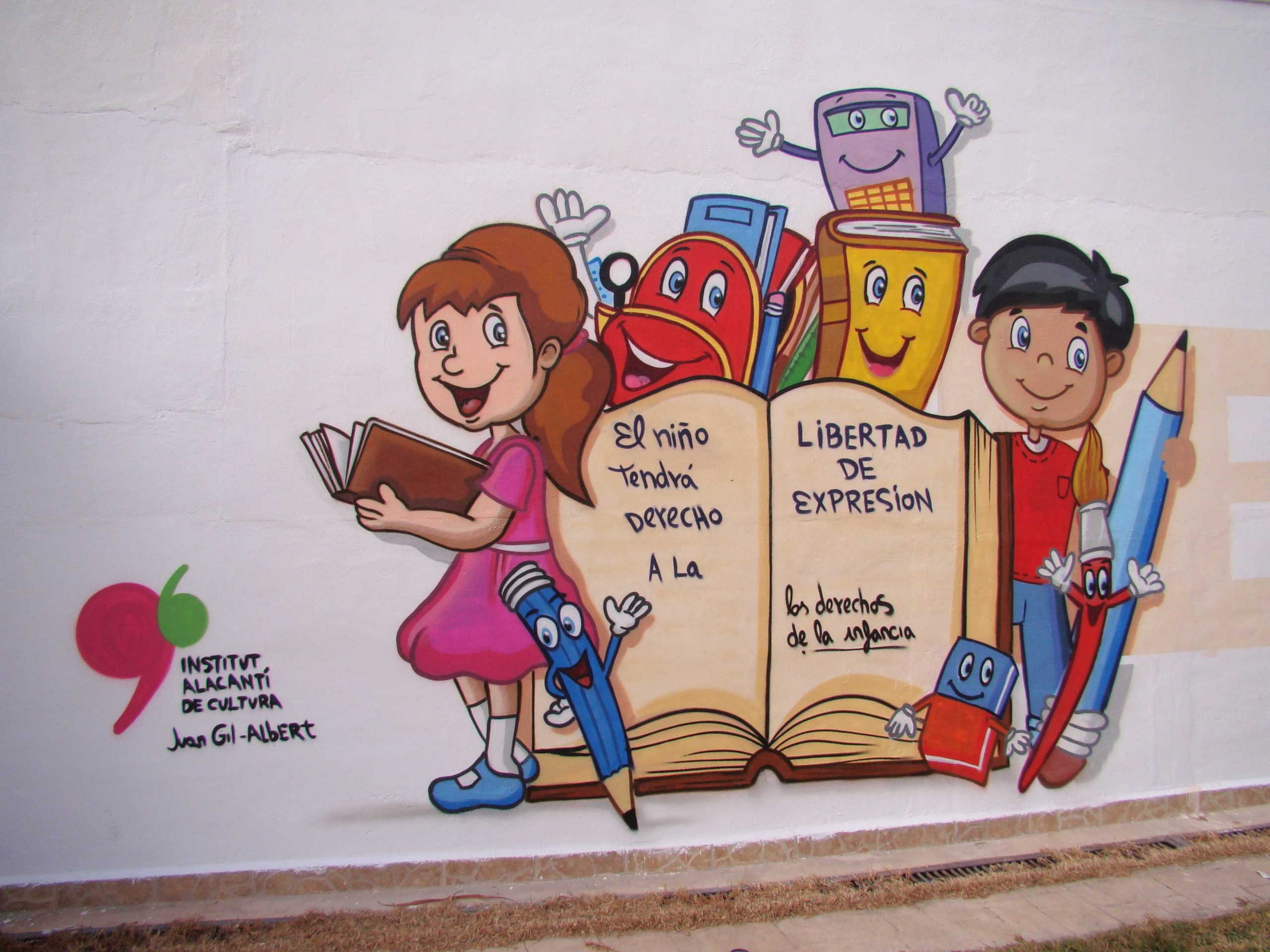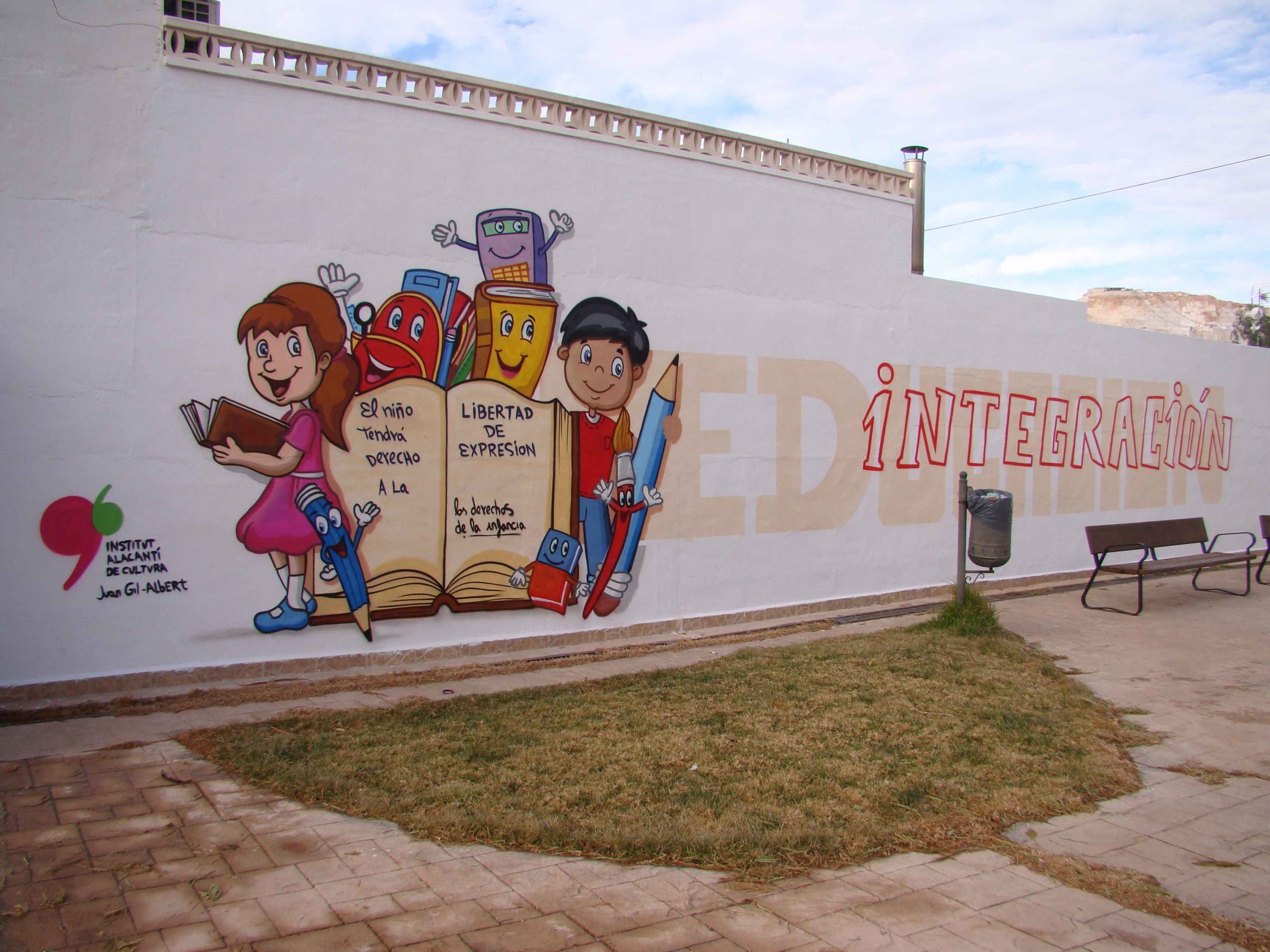 El pasado sábado, con motivo de la conmemoración del Día Internacional de los Derechos Humanos, el Instituto Alicantino de Cultura Juan Gil Albert y la Diputación de Alicante en colaboración con el Ayuntamiento de Algueña, llevaron a cabo la realización de un grafiti por los niños y el derecho a la educación. Dicho mural fue realizado en el Parque del Maestro por el artista grafitero Rudi.