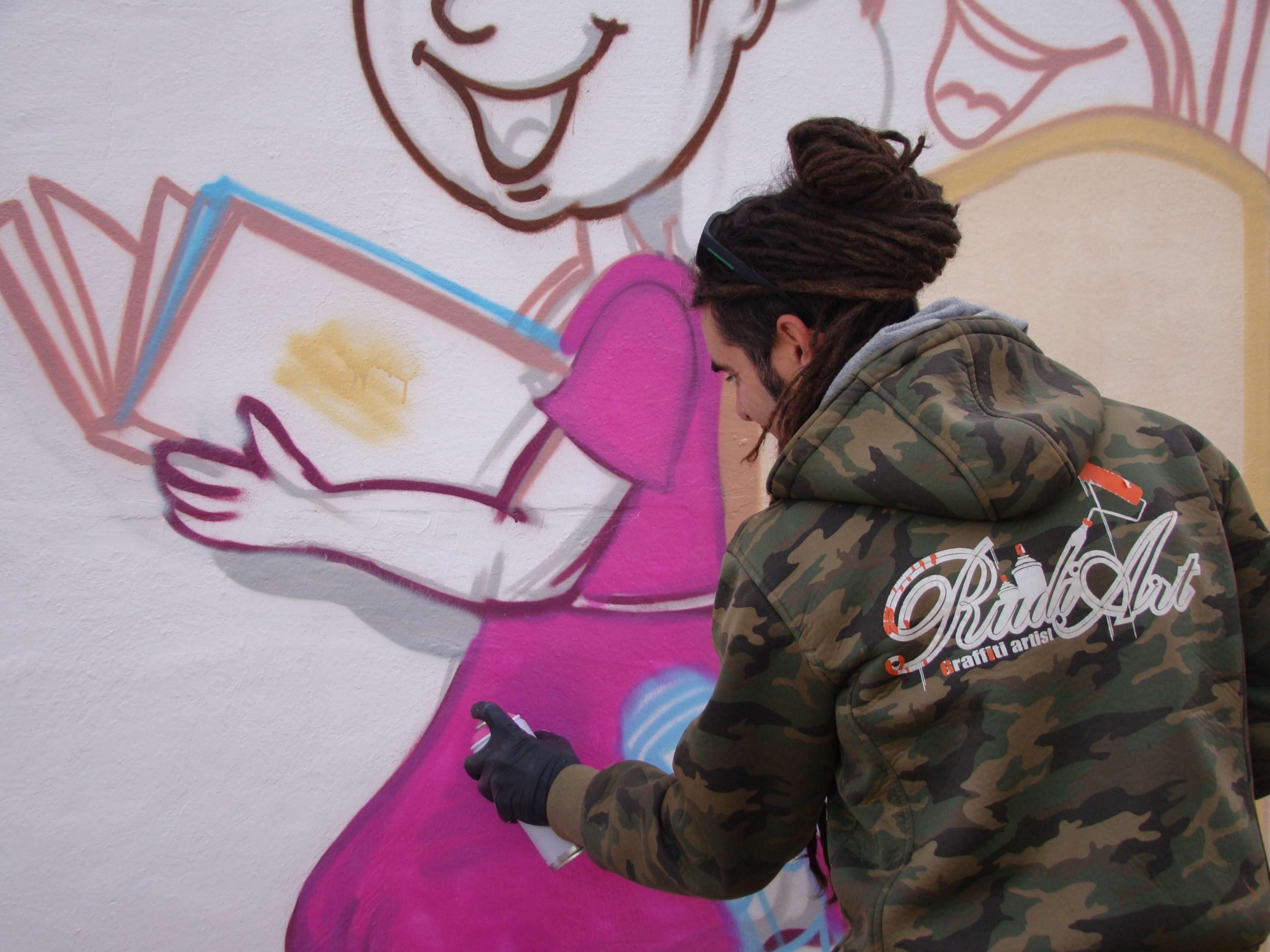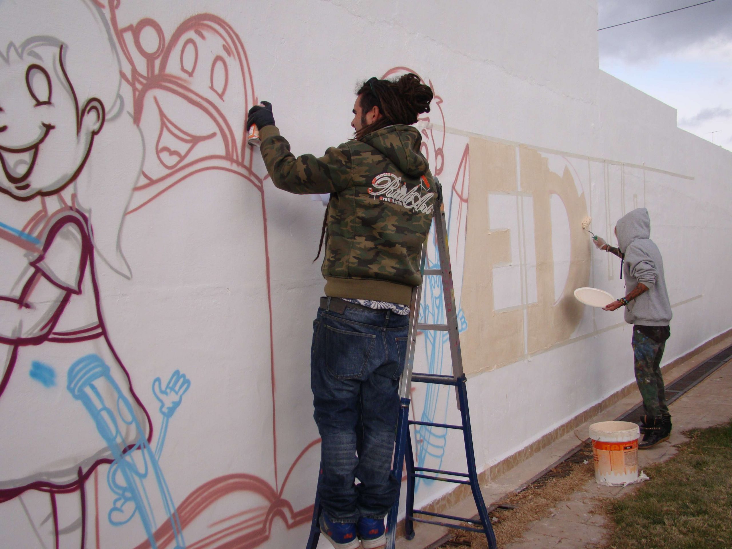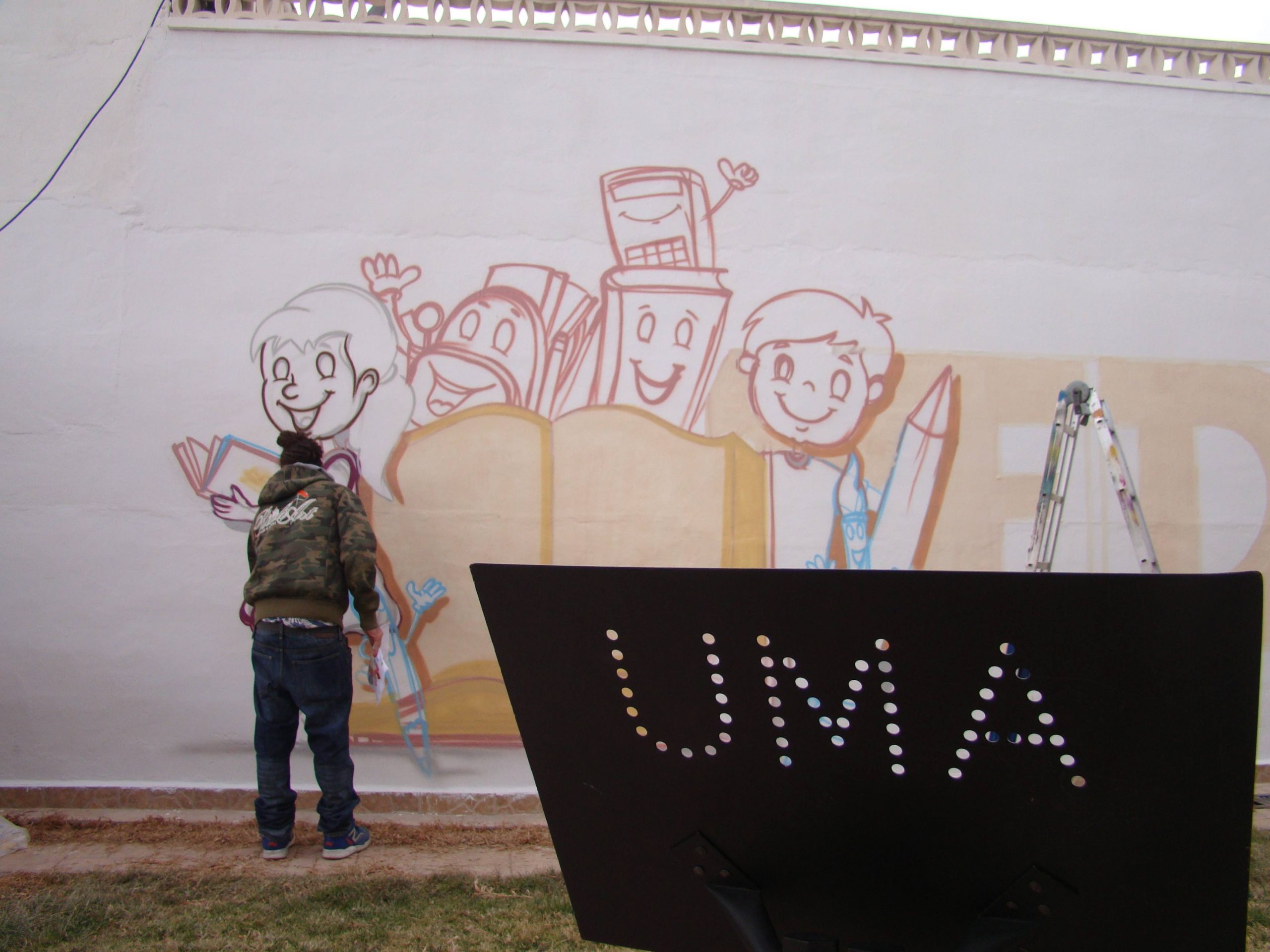 El pasado sábado, con motivo de la conmemoración del Día Internacional de los Derechos Humanos, el Instituto Alicantino de Cultura Juan Gil Albert y la Diputación de Alicante en colaboración con el Ayuntamiento de Algueña, llevaron a cabo la realización de un grafiti por los niños y el derecho a la educación. Dicho mural fue realizado en el Parque del Maestro por el artista grafitero Rudi.