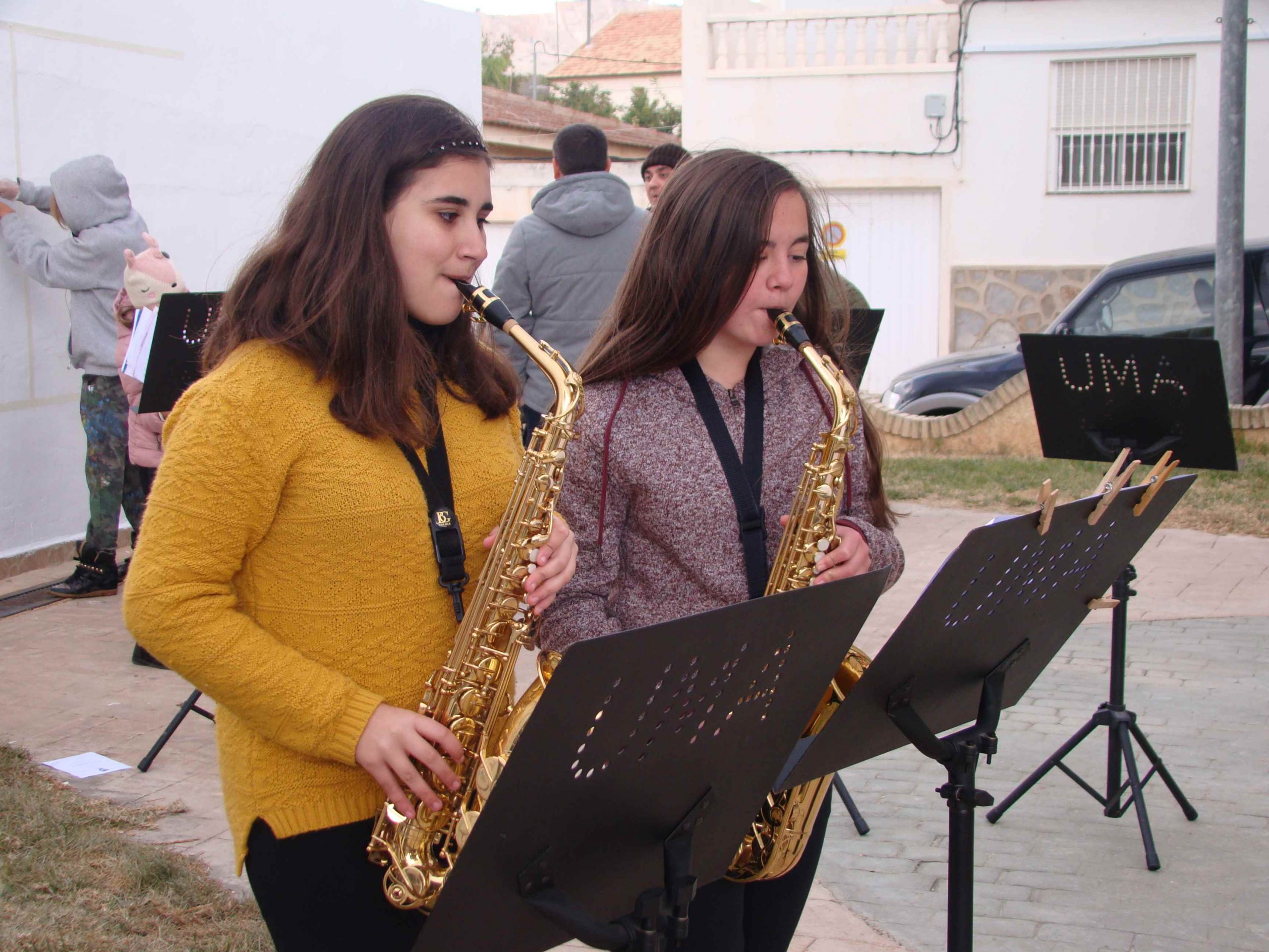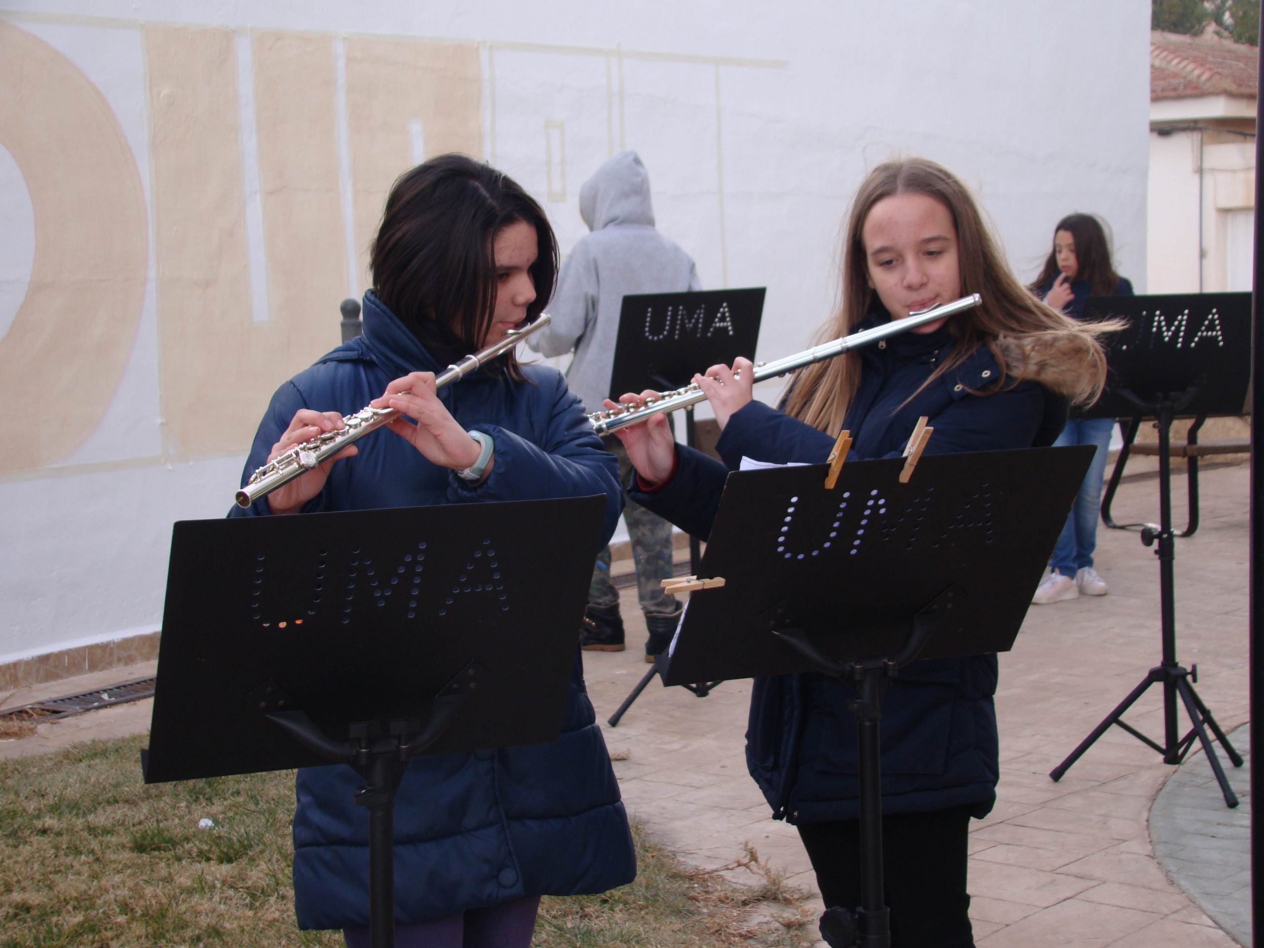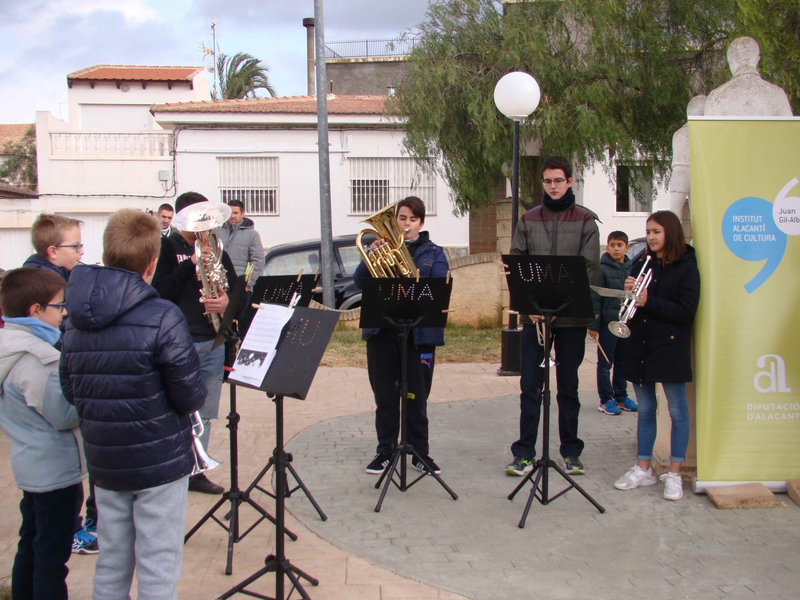 A pesar del frío, la jornada transcurrió con música a cargo de la Banda Juvenil de la Sdad. Unión Musical Algueñense, que acompañaron la actuación del artista durante toda la mañana al tiempo que se leían algunos de los artículos por los Derechos Humanos.