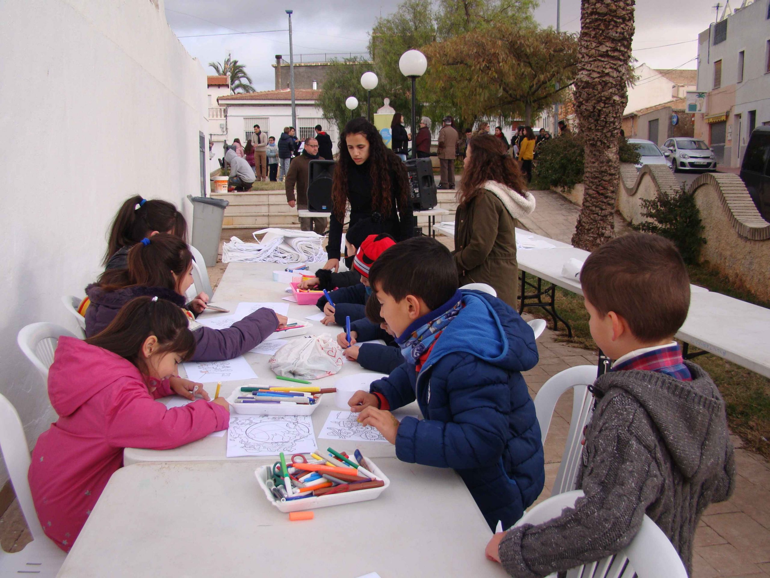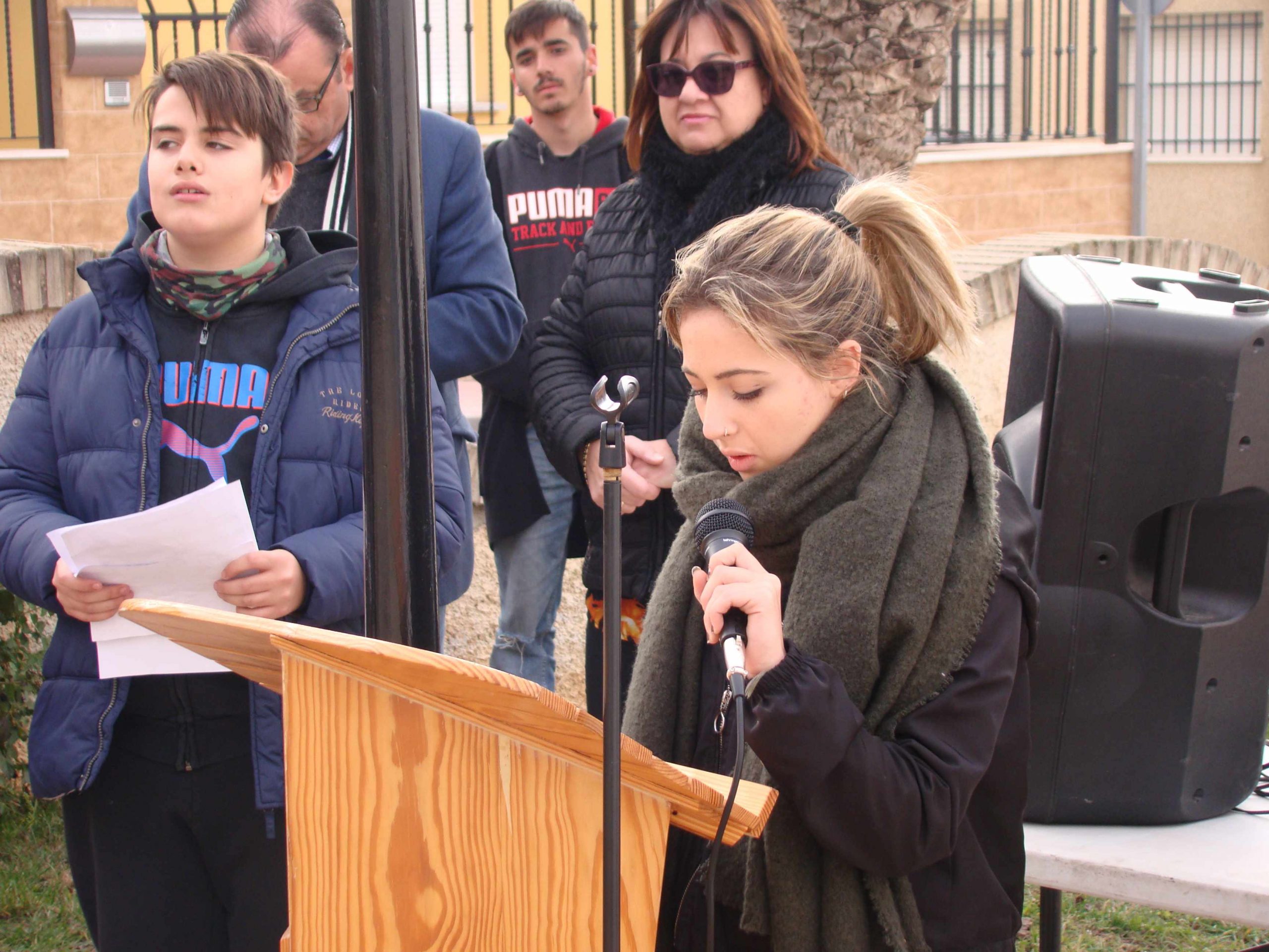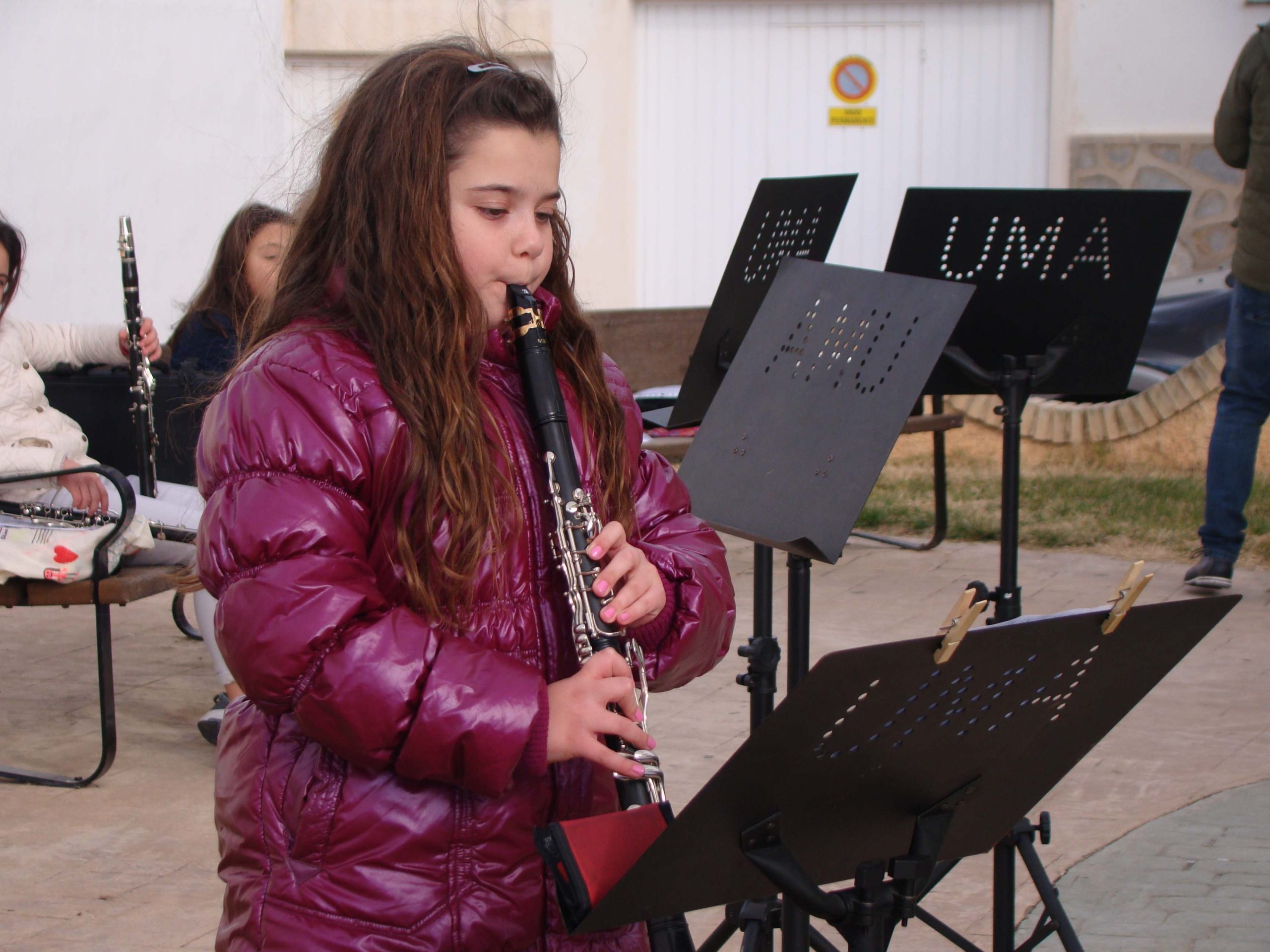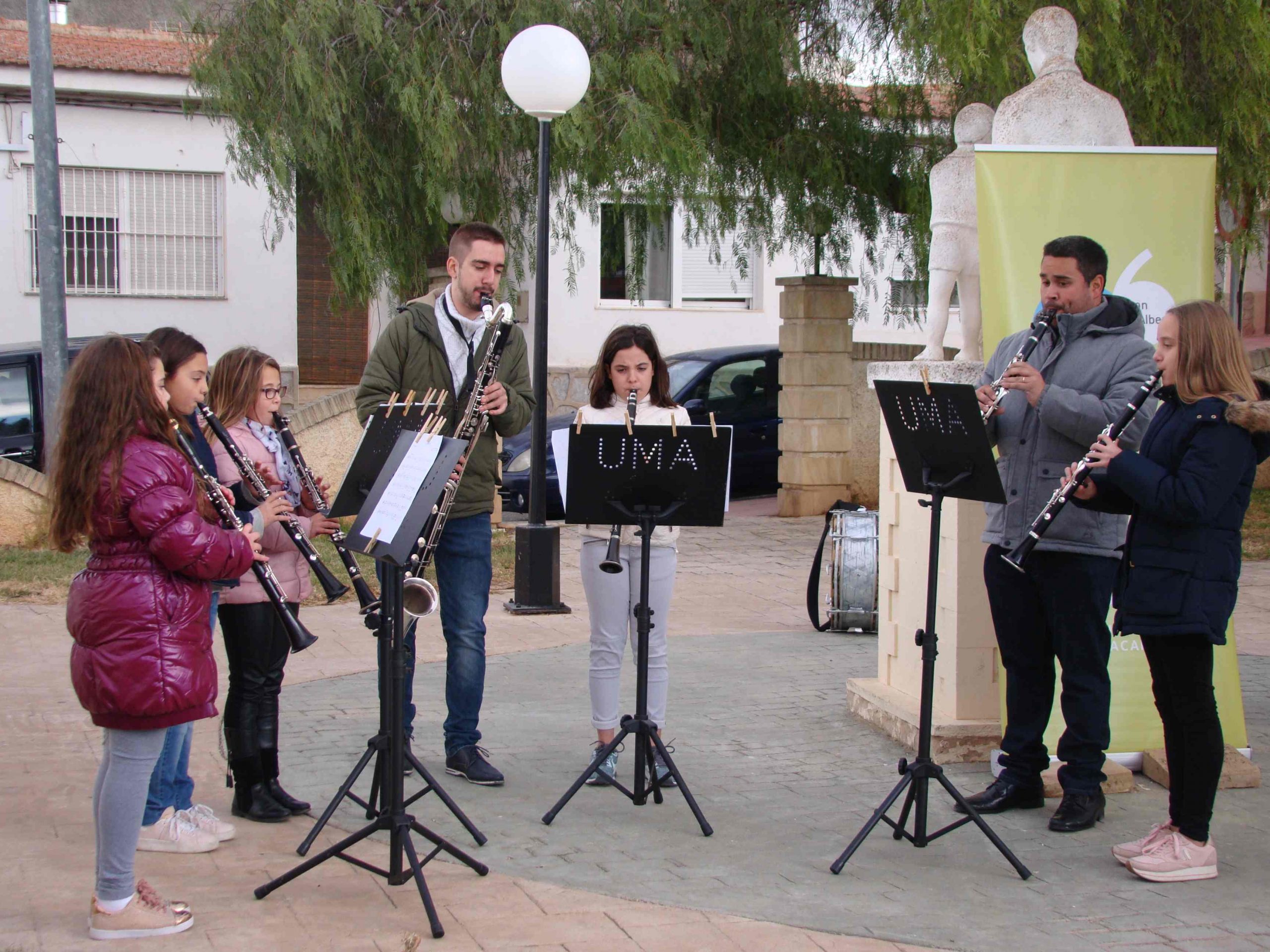 A pesar del frío, la jornada transcurrió con música a cargo de la Banda Juvenil de la Sdad. Unión Musical Algueñense, que acompañaron la actuación del artista durante toda la mañana al tiempo que se leían algunos de los artículos por los Derechos Humanos.