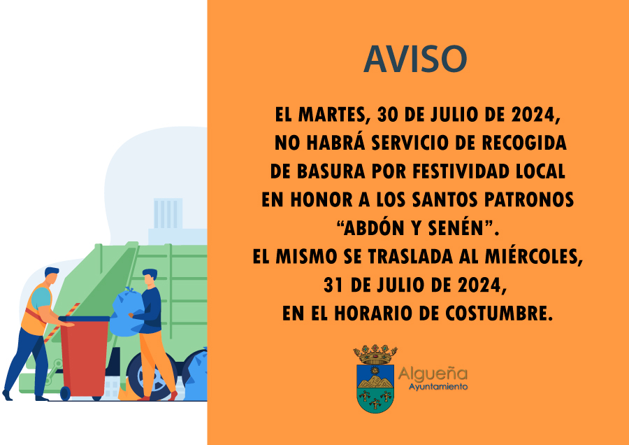 AVISO – Cambio de día del Servicio de Recogida de Basura