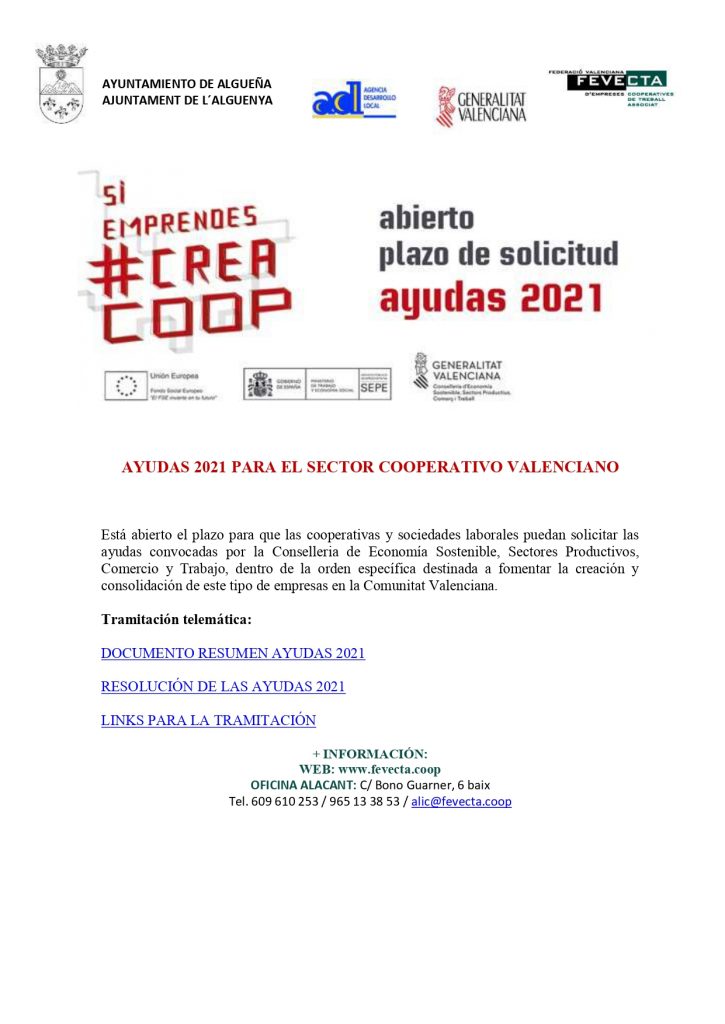 AYUDAS 2021 PARA EL SECTOR COOPERATIVO VALENCIANO