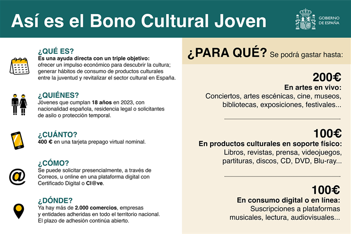 Si has nacido en el año 2005, puedes solicitar el ???? ???????? ????? ???? antes del 30 de septiembre a través de ? https://bonoculturajoven.gob.es/ y disfrutar de 400 € destinados al disfrute de productos, servicios y actividades culturales.