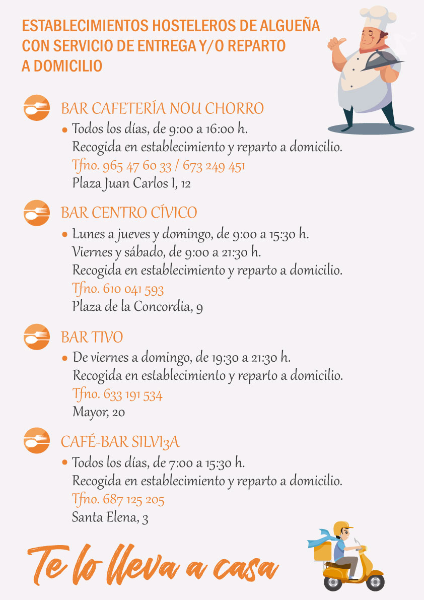 Colabora con la hostelería local. Llama y reserva tu pedido para recoger en el establecimiento o «Te lo lleva a casa».