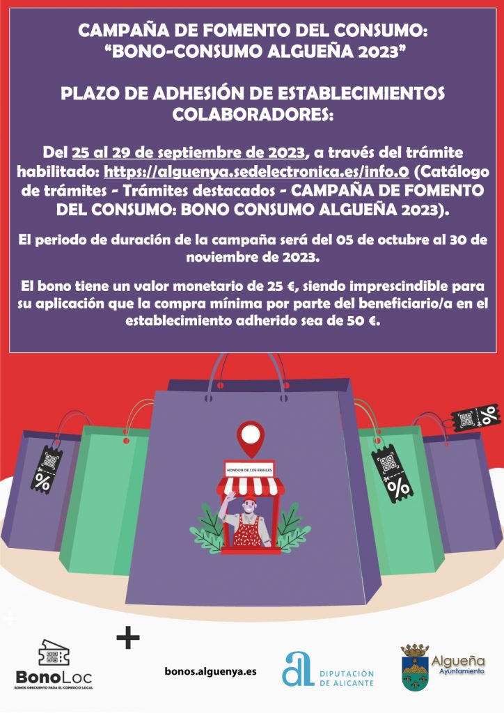 CAMPAÑA DE FOMENTO DEL CONSUMO: «BONO-CONSUMO ALGUEÑA 2023». ADHESIÓN ESTABLECIMIENTOS COLABORADORES