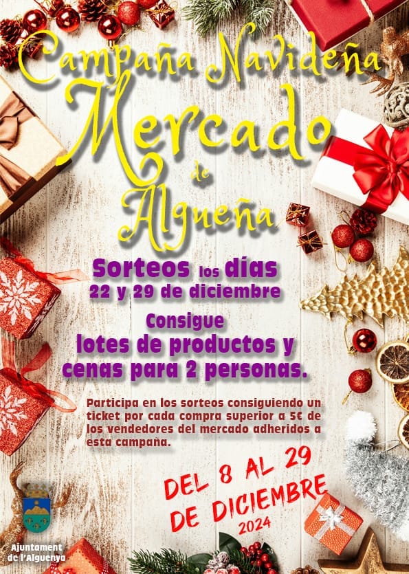 Desde el día 8 y hasta el 29 de diciembre, todos los domingos, participa y gana premios con tus compras igual o superiores a 5€ en los puestos colaboradores.