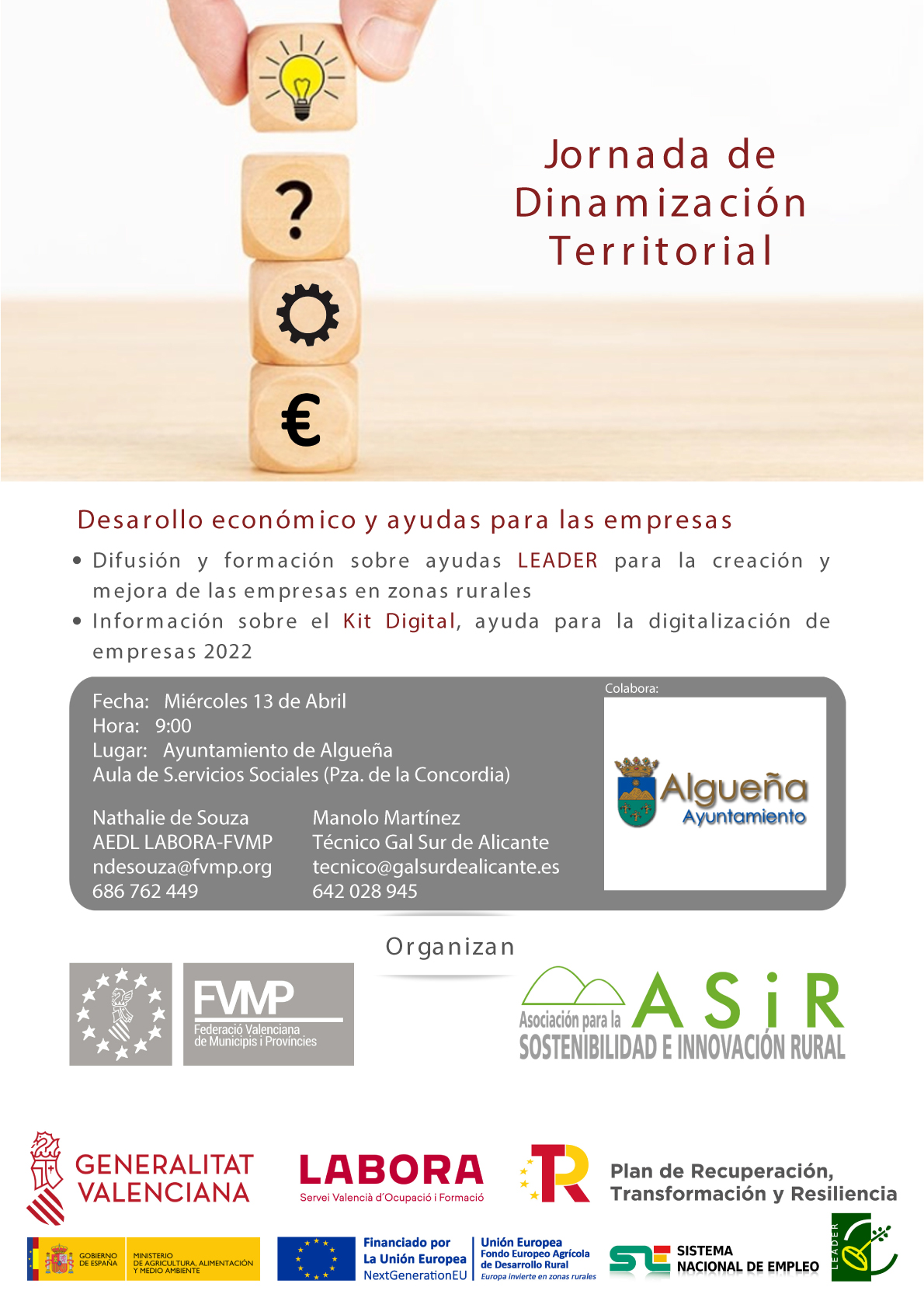 JORNADA DE DINAMIZACIÓN TERRITORIAL en #Algueña mediante la difusión y formación sobre Ayudas #LEADER para la creación y mejora de … Leer más
