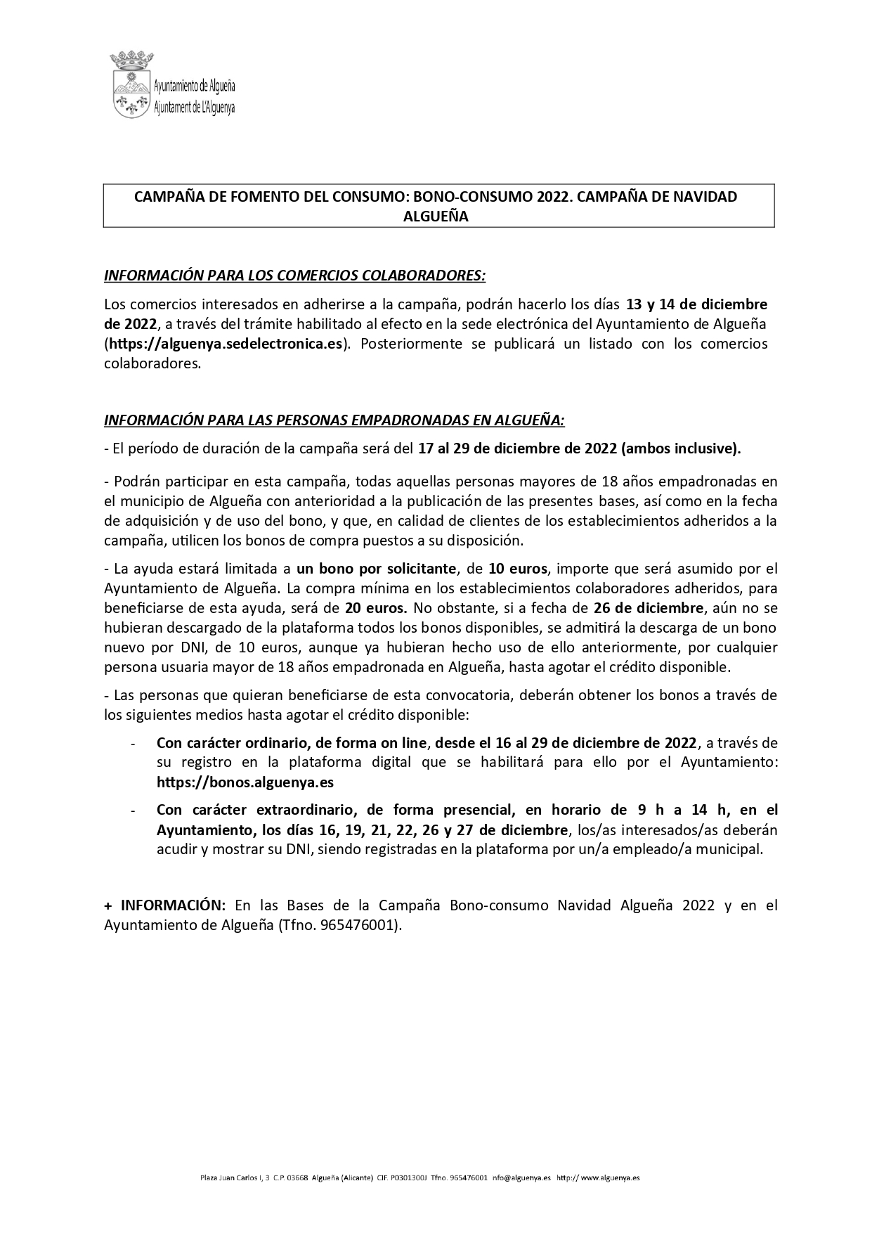 BASES CAMPAÑA BONO-CONSUMO NAVIDAD ALGUEÑA 2022 Publicación BOP Bases Campaña Bono Bonsumo Navidad 2022