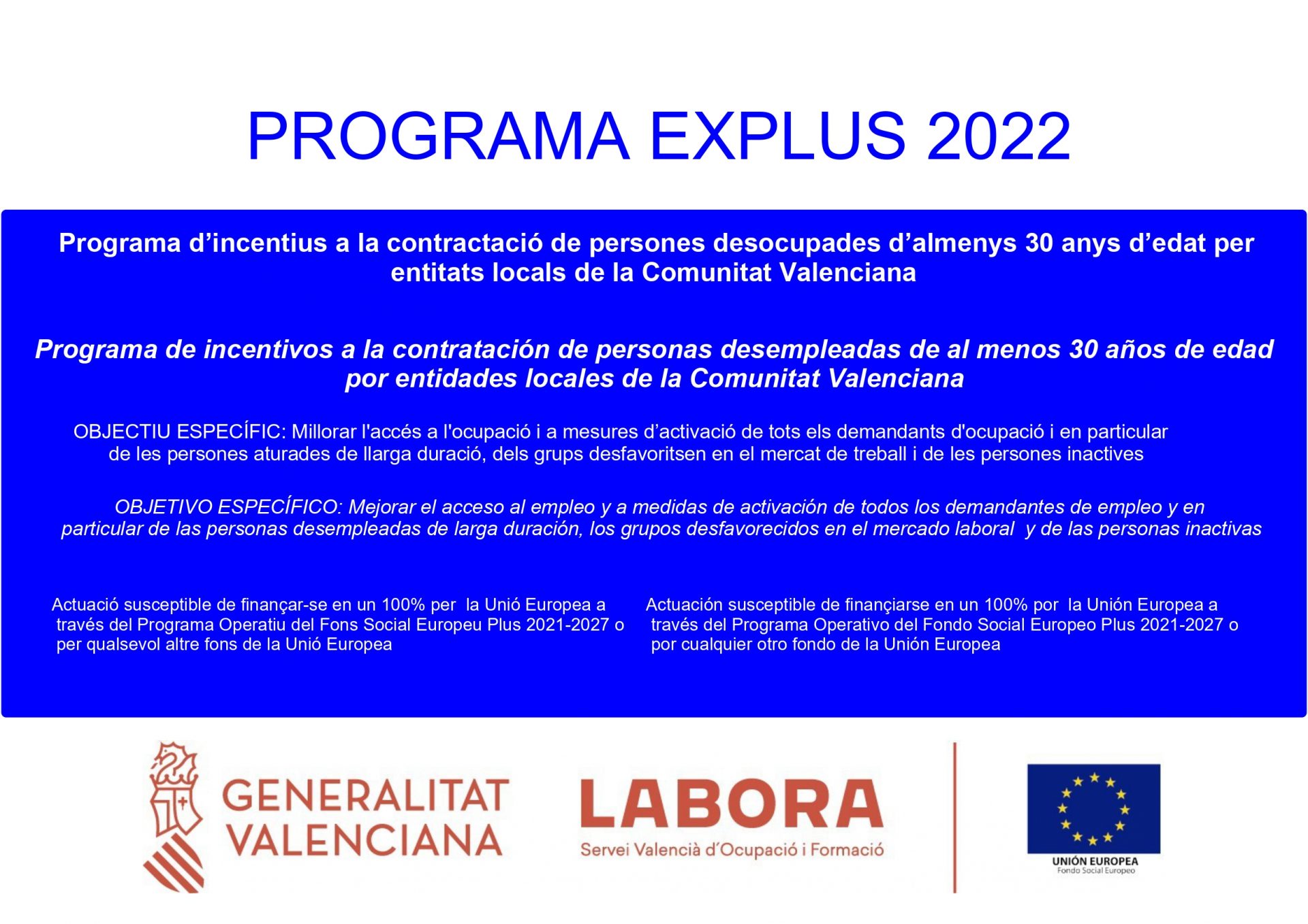 Inicio del PROGRAMA EXPLUS 2022 – AVALEM EXPERIÈNCIA PLUS, destinado a la contratación de personas desempleadas de al menos 30 … Leer más
