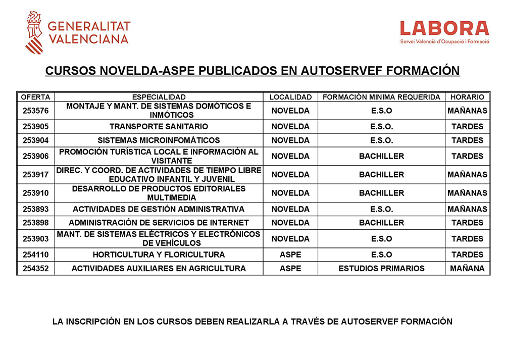 Información e inscripciones en Ayuntamiento, hasta el 28 de septiembre.