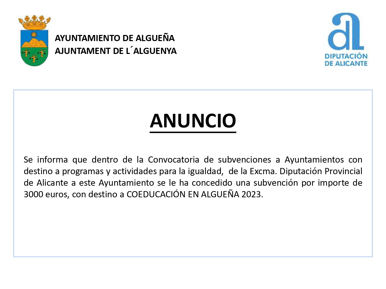│ El AYUNTAMIENTO DE ALGUEÑA convoca el » » – í