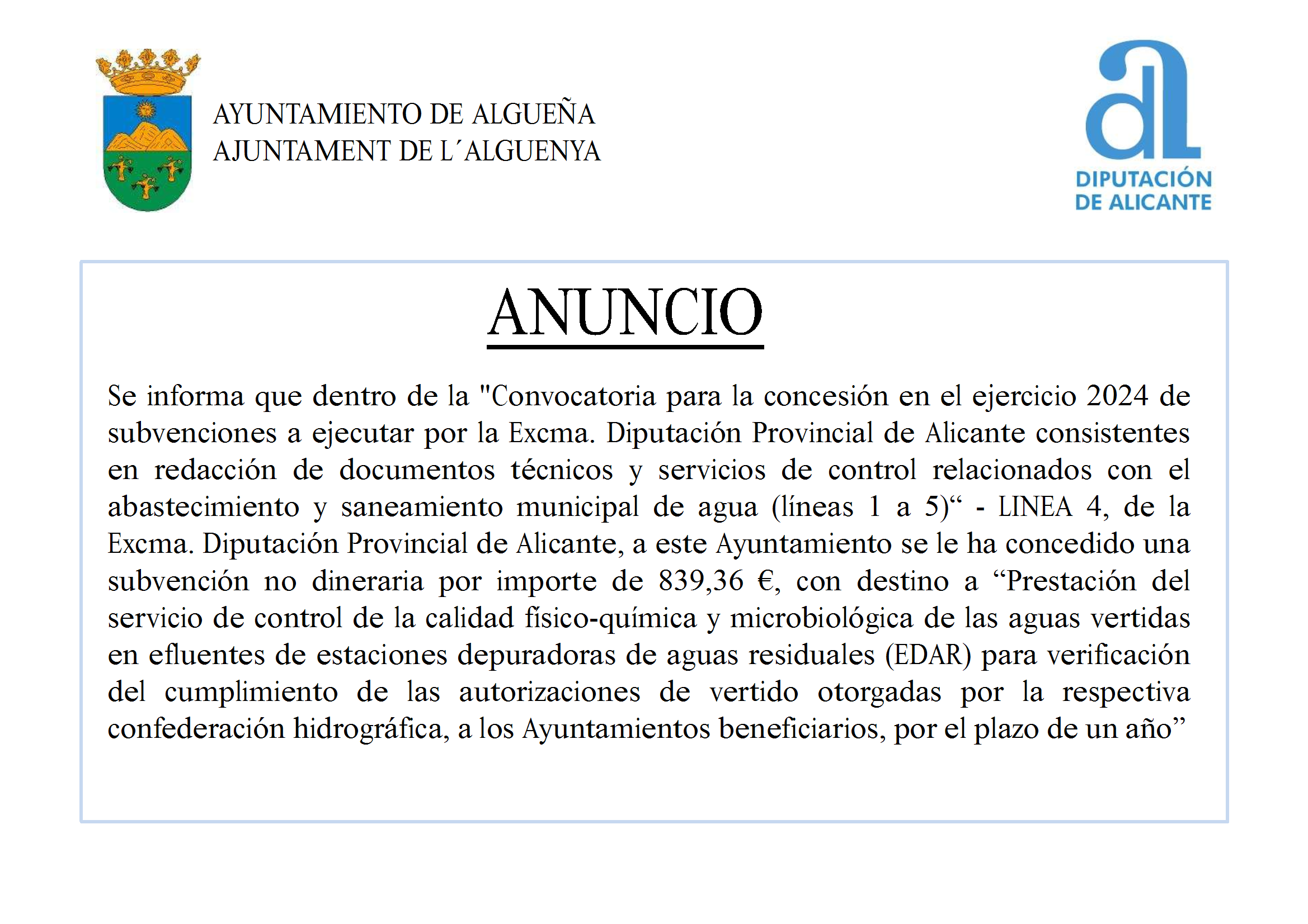 ANUNCIO – Subvención con destino a «Prestación del servicio de control de la calidad físico-química y microbiológica de las aguas … Leer más