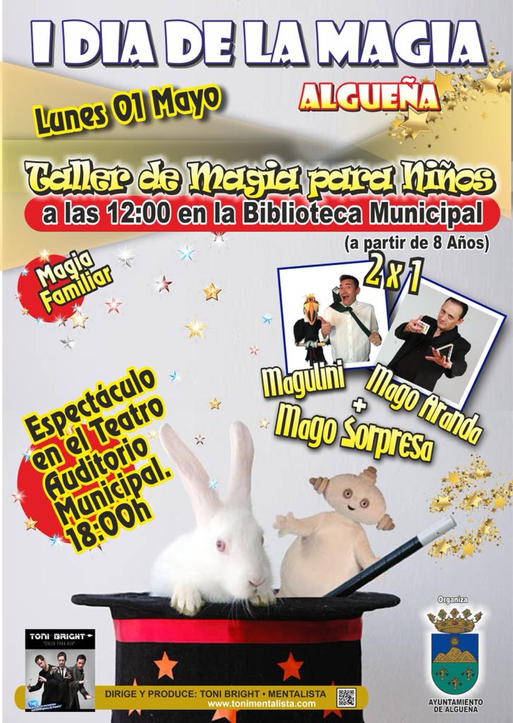 I DÍA DE LA MAGIA en Algueña. 1 de mayo 2023 12:00 H – Taller de Magia para niños (a … Leer más