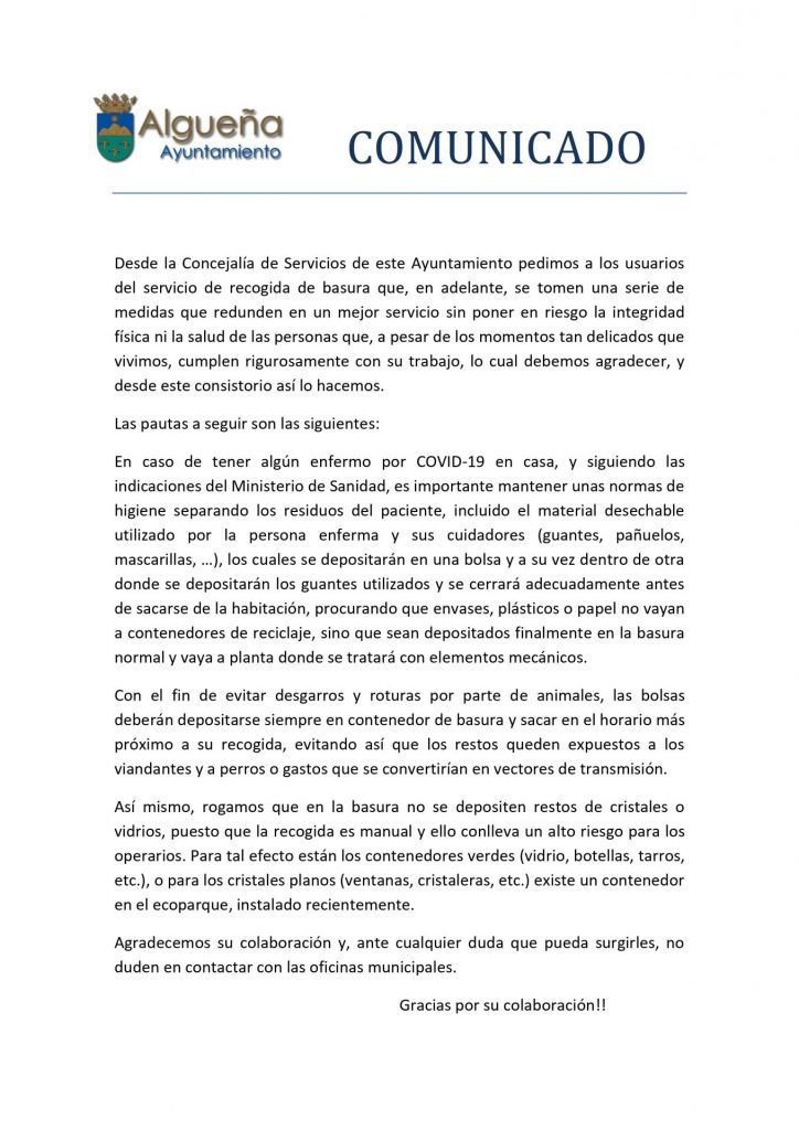 Categoria: Anuncio, Comunicado, Estado de Alarma, Medio Ambiente, Noticias, Salud
