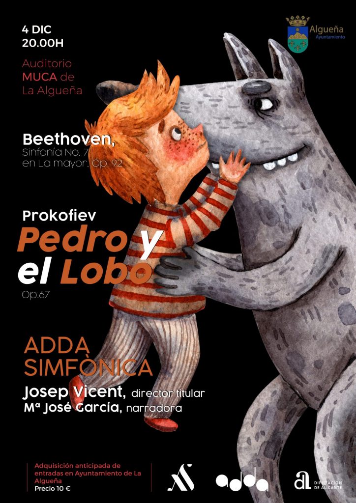 El próximo 4 de diciembre, a las 20:00 horas, en el Auditorio MUCA, tendremos la oportunidad de disfrutar del extraordinario concierto a cargo de la Orquesta ADDA Simfònica bajo la batuta de su titular, Josep Vicent, con las obras: Sinfonía nº 7 en La mayor Op. 92, de Beethoven, y «Pedro y el Lobo», Op. 67 de Prokofiev, con la narración de Mª José García, en el cual, se rendirá homenaje al maestro y amigo, Jesús Mula, recientemente fallecido.