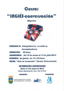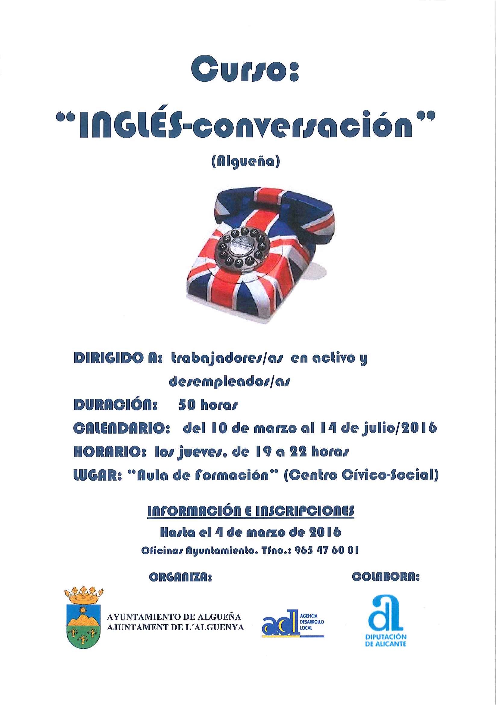 Hoy comienza el curso de inglés-conversación, con una duración de 50 horas, dirigido a trabajadores/as en activo y desempleados/as, organizado por la Agencia de Desarrollo Local del Excmo. Ayuntamiento de Algueña y con la colaboración de la Diputación de Alicante.