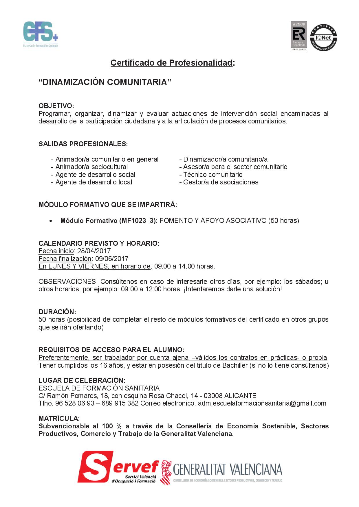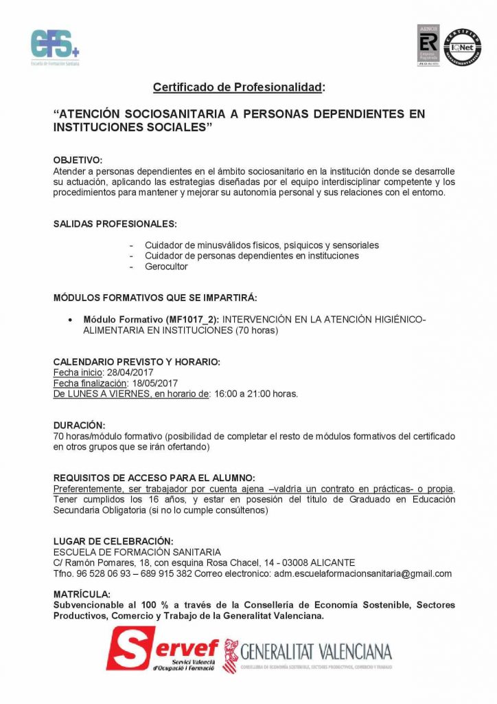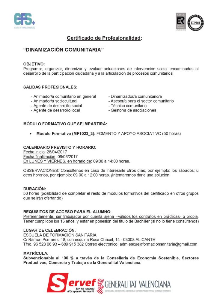 Cursos subvencionados de «ATENCIÓN SOCIOSANITARIA A PERSONAS DEPENDIENTES EN INSTITUCIONES SOCIALES» y «DINAMIZACIÓN COMUNITARIA».