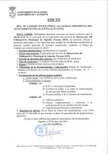 Convocatoria concurso para la adjudicación de la concesión de la explotación del servicio de Quiosco-Bar del Polideportivo Municipal (Verano 2015).
