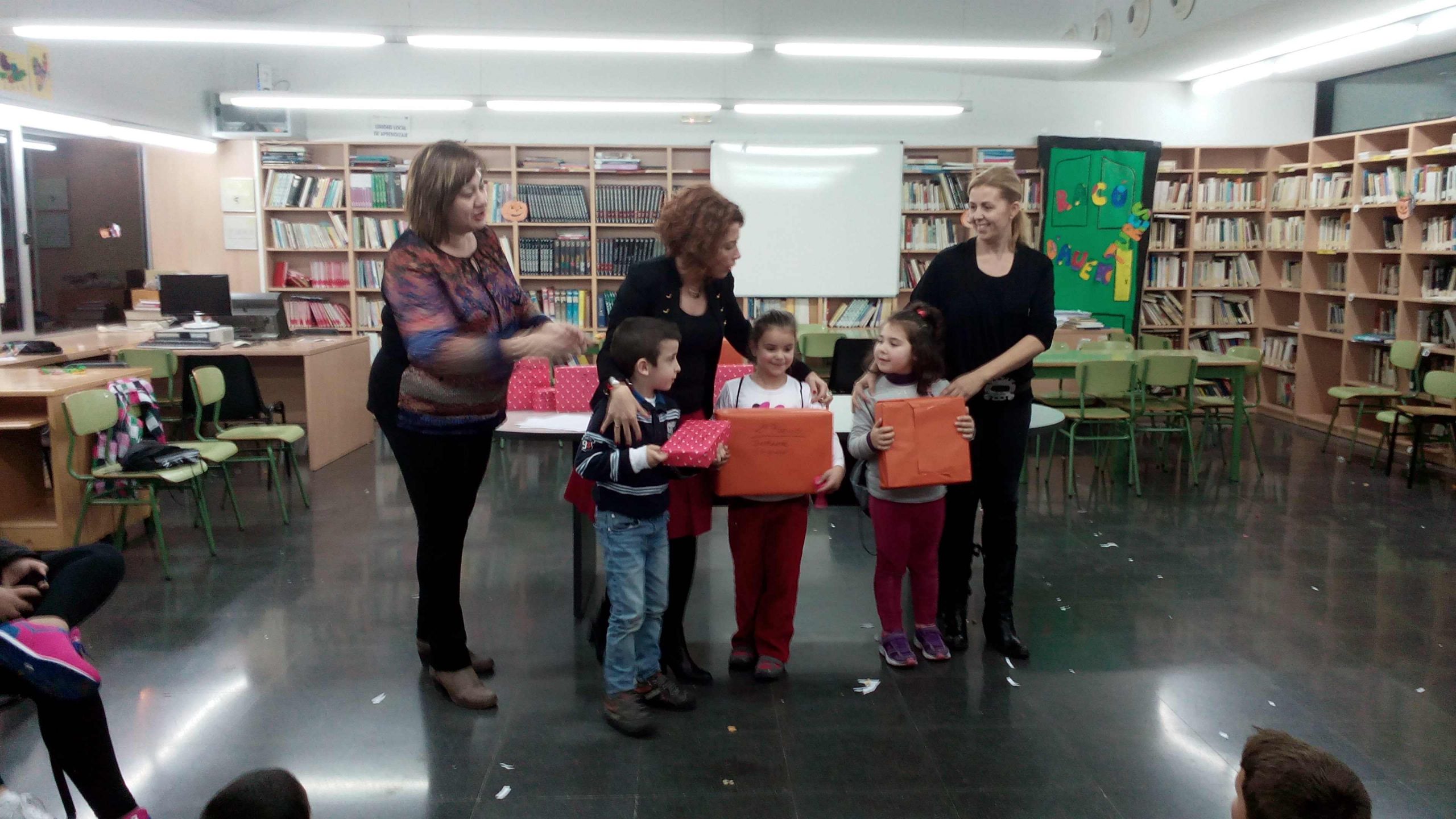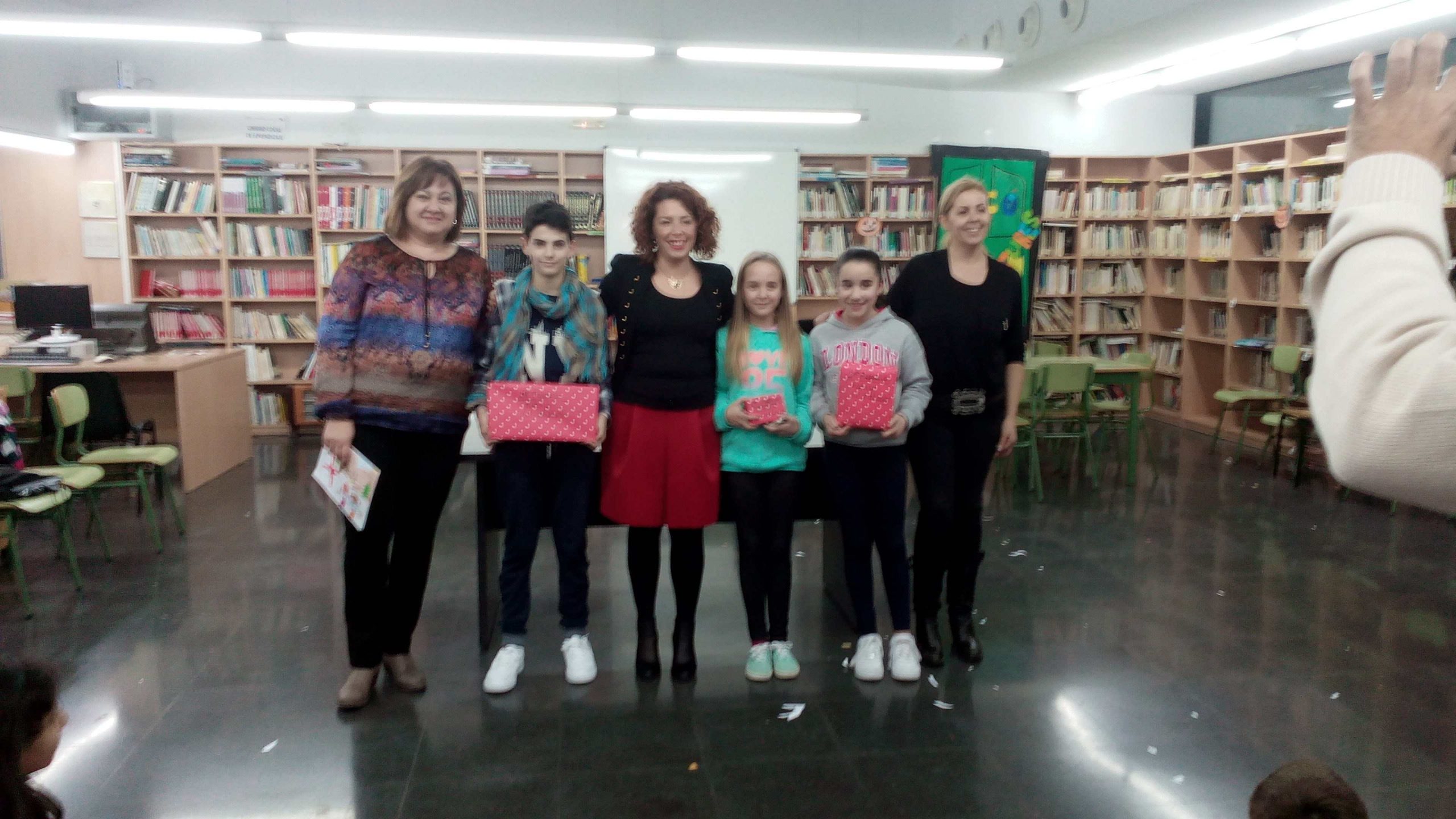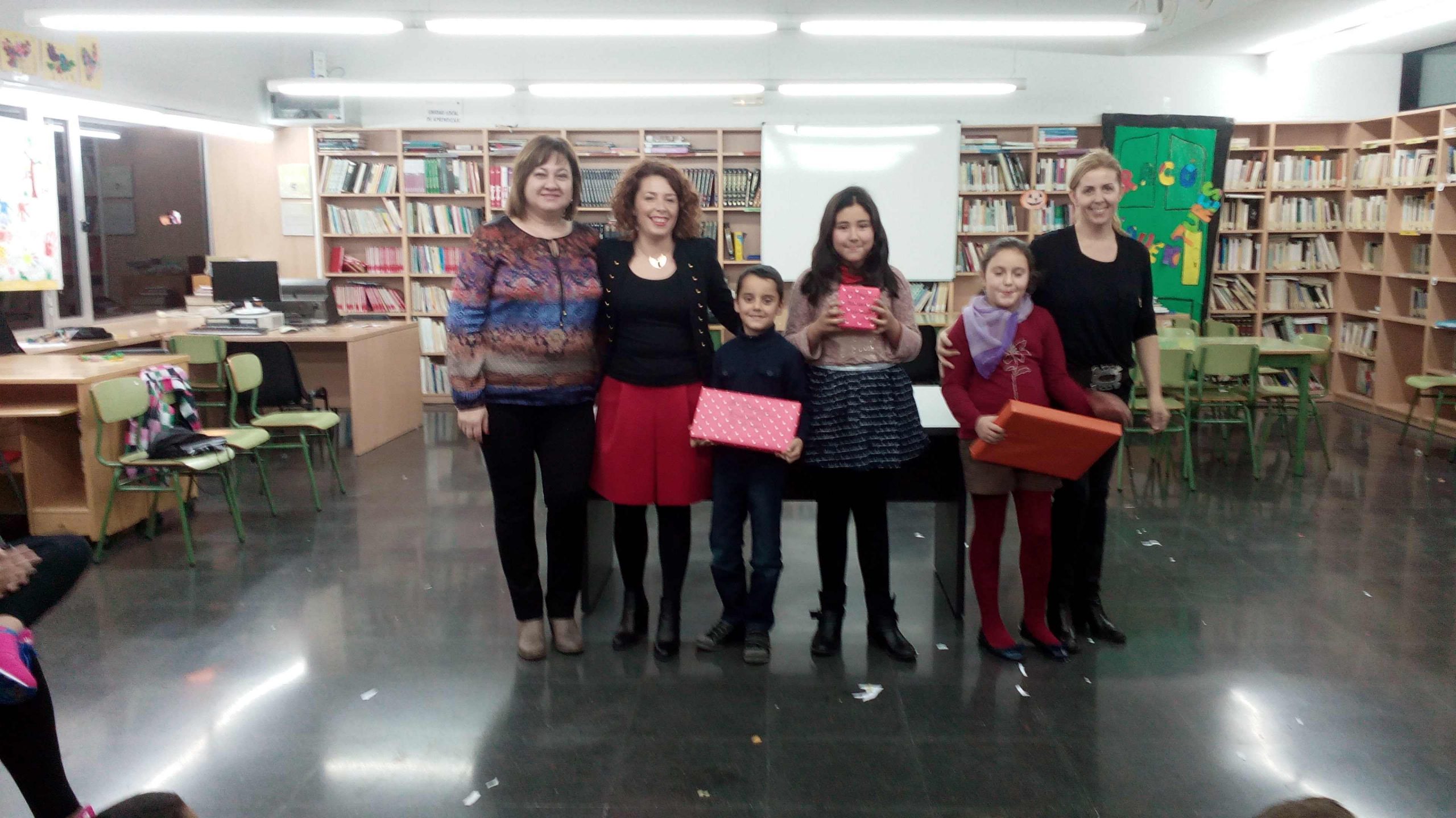 La alcaldesa junto a la gerente de Fundación Levantina y la concejala de fiestas, durante la entrega de premios del I CONCURSO DE DIBUJO INFANTIL llevado a cabo esta tarde.