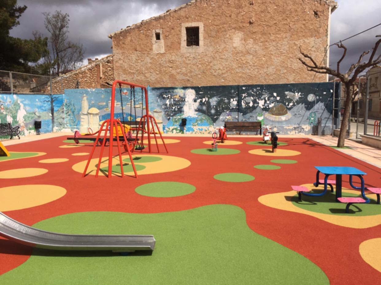 Finalizadas las obras de «ADECUACIÓN Y MEJORA DEL PARQUE INFANTIL» en Avda. Roca de Togores, consistentes en la sustitución del pavimento continuo de caucho, renovación de acera perimetral y mejoras en bancos y juegos.
