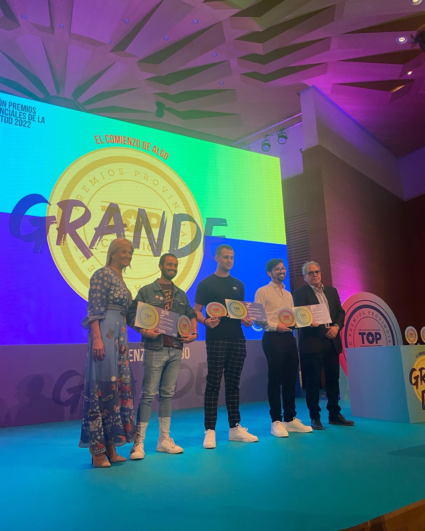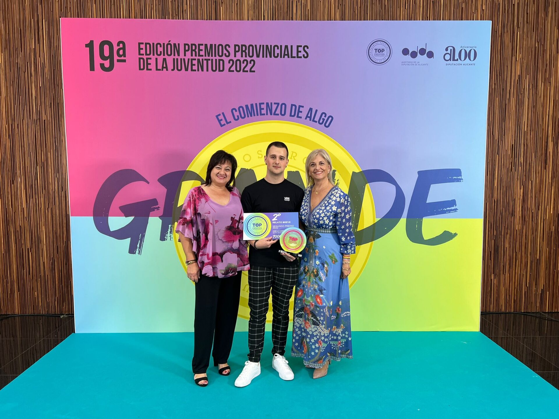 El pasado 13 de octubre, con el relato breve «La caza del fuego», se alzó ganador del segundo premio en dicha categoría el joven algueñero, Fabio Galiana Martínez, en la 19ª edición de los premios -Top Creation 2022- que otorga el Àrea de Juventud de la Diputación Provincial, donde se premia el talento de los jóvenes de la provincia.