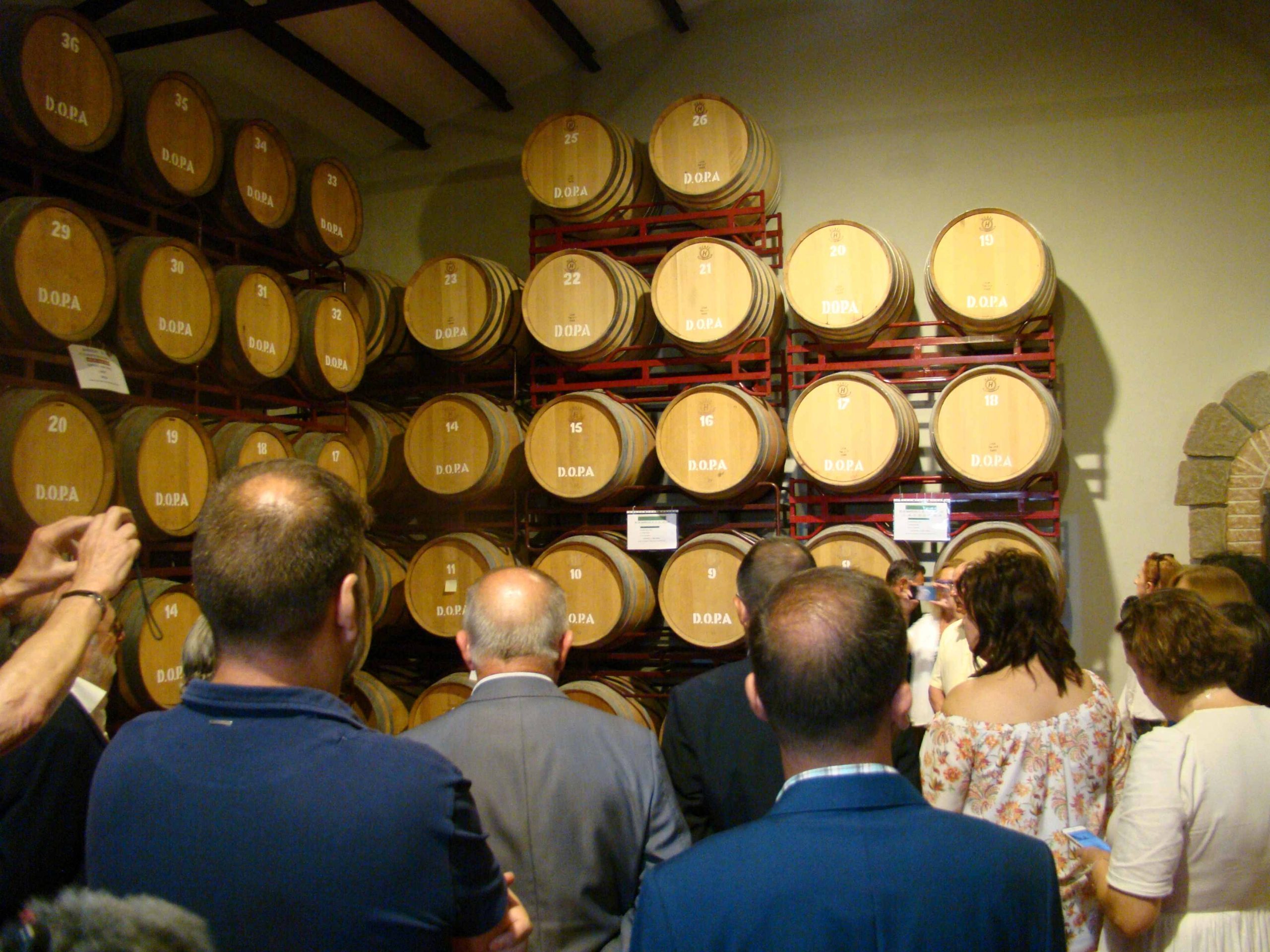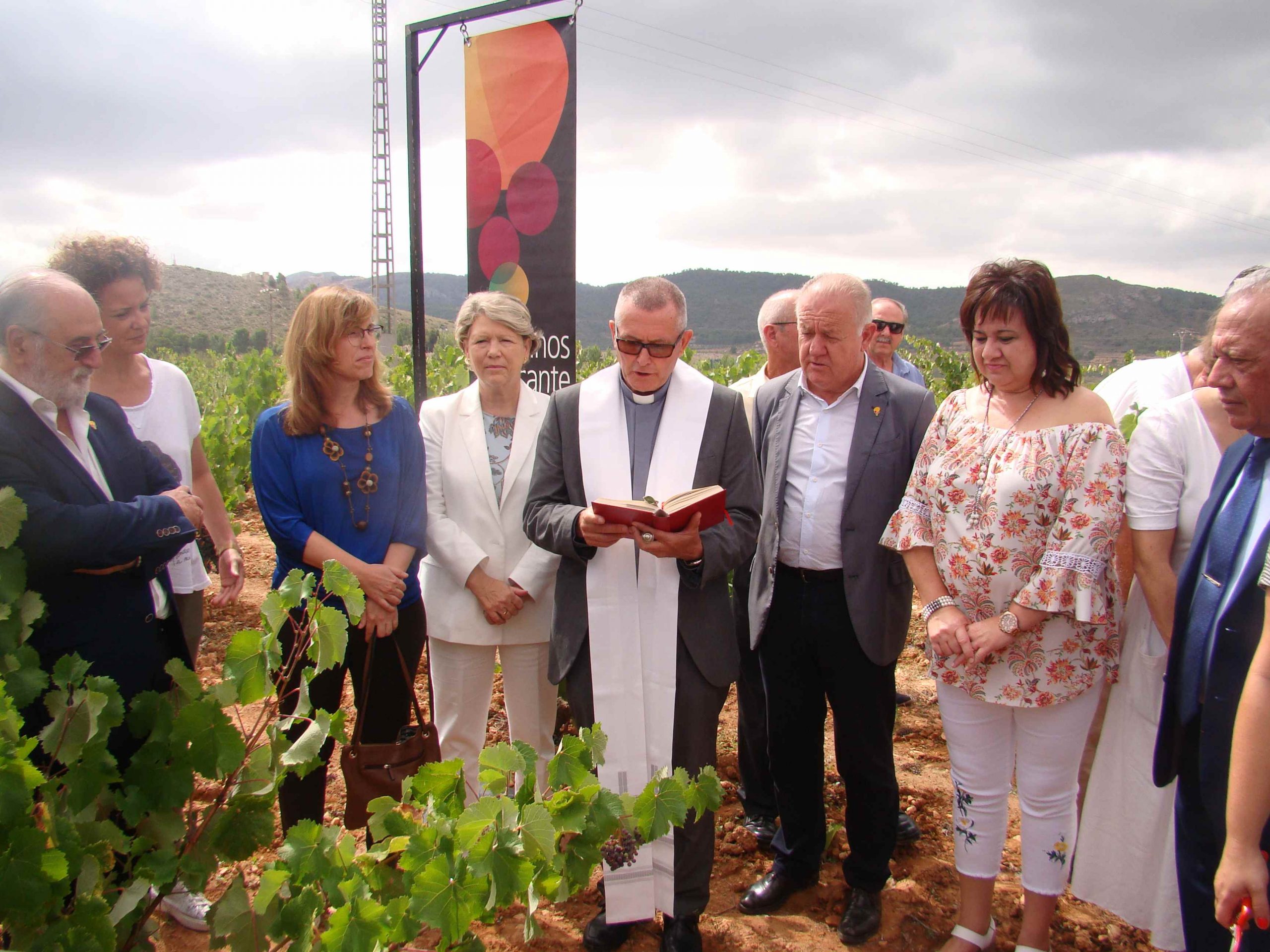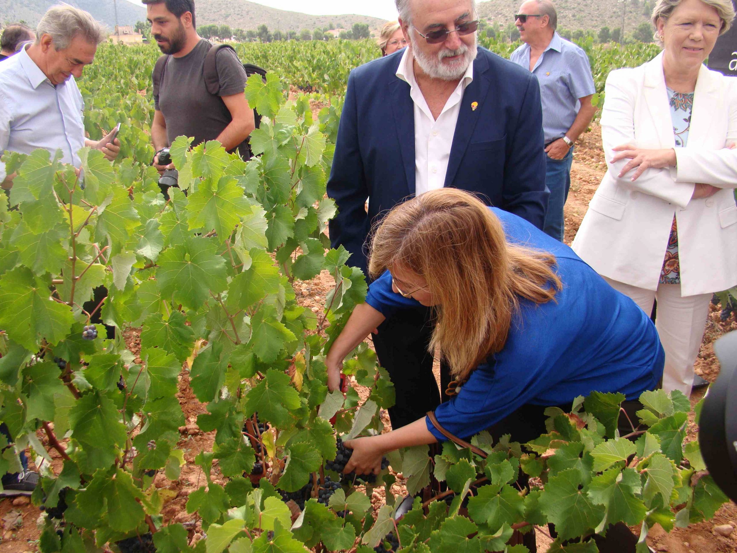 A continuación, se procedió a la inauguración de la vendimia con la bendición del Párroco, José Luís Robledano, y el corte de unos racimos de uva de cepas de la variedad Monastrell, amenizado por la Rondalla, Coros y Danzas Algueña y acompañados del resto de invitados al acto, que más tarde tuvieron la oportunidad de visitar la Sala Fondillón donde se guardan una de las mejores cavas de Fondillón en toneles de más de 120 años.
