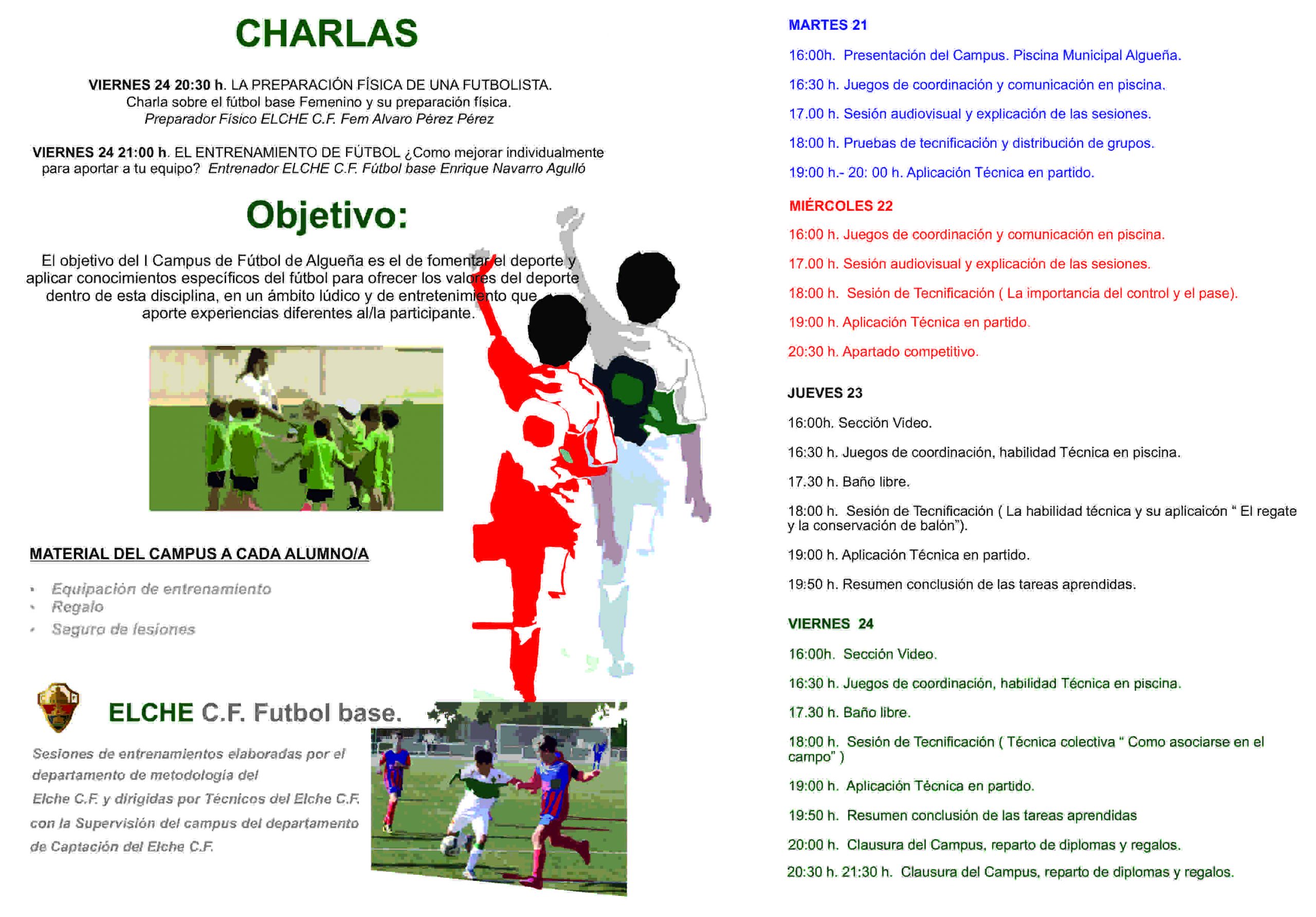 Del 21 al 24 de julio tendrá lugar el -I CAMPUS DE FÚTBOL- en Algueña, en colaboración con el ELCHE C.F.