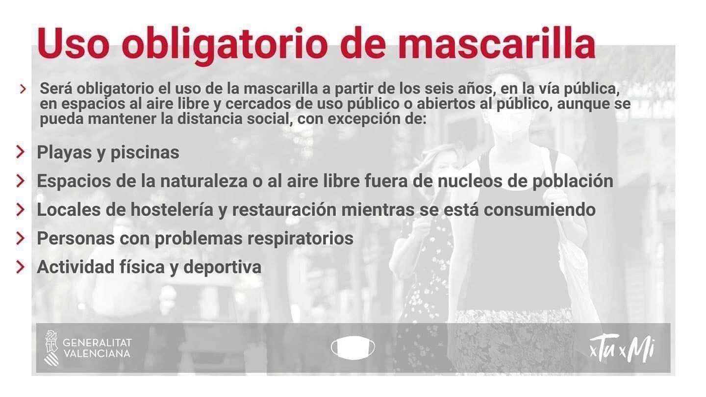 La Generalitat Valenciana decreta el uso obligatorio de mascarilla en la Comunidad Valenciana excepto en playas, piscinas y espacios naturales. ? https://bit.ly/3jjAnbe